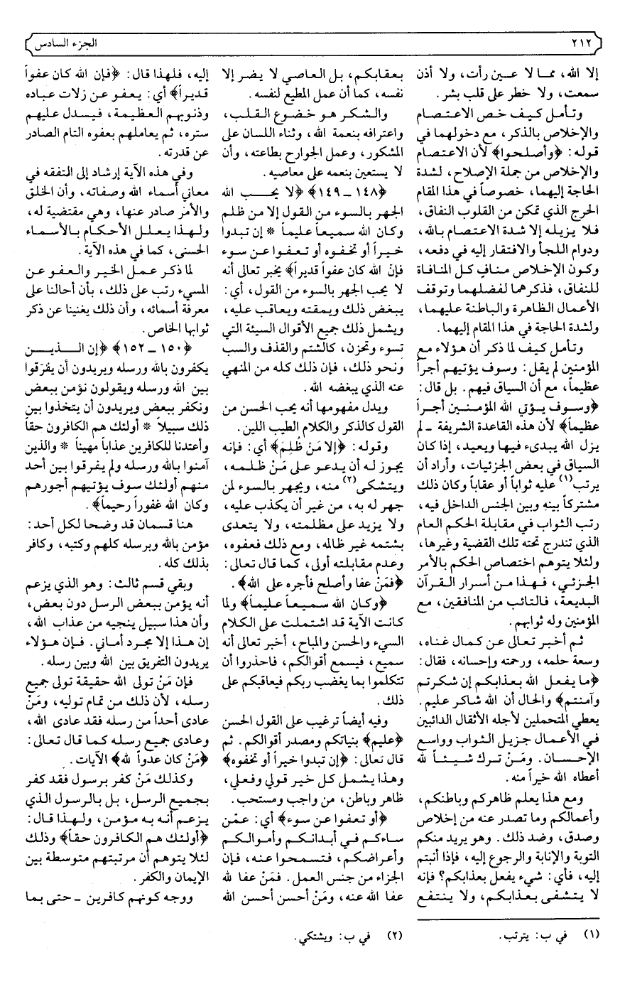 {148، 149} {لا يُحِبُّ اللَّهُ الْجَهْرَ بِالسُّوءِ مِنَ الْقَوْلِ إِلا مَنْ ظُلِمَ وَكَانَ اللَّهُ سَمِيعًا عَلِيمًا * إِنْ تُبْدُوا خَيْرًا أَوْ تُخْفُوهُ أَوْ تَعْفُوا عَنْ سُوءٍ فَإِنَّ اللَّهَ كَانَ عَفُوًّا قَدِيرًا} .