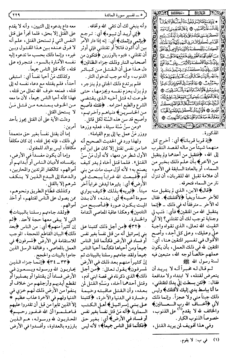 {32} {مِنْ أَجْلِ ذَلِكَ كَتَبْنَا عَلَى بَنِي إِسْرَائِيلَ أَنَّهُ مَنْ قَتَلَ نَفْسًا بِغَيْرِ نَفْسٍ أَوْ فَسَادٍ فِي الأرْضِ فَكَأَنَّمَا قَتَلَ النَّاسَ جَمِيعًا وَمَنْ أَحْيَاهَا فَكَأَنَّمَا أَحْيَا النَّاسَ جَمِيعًا وَلَقَدْ جَاءَتْهُمْ رُسُلُنَا بِالْبَيِّنَاتِ ثُمَّ إِنَّ كَثِيرًا مِنْهُمْ بَعْدَ ذَلِكَ فِي الأرْضِ لَمُسْرِفُونَ} .