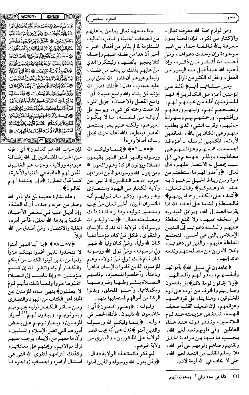 {55، 56} {إِنَّمَا وَلِيُّكُمُ اللَّهُ وَرَسُولُهُ وَالَّذِينَ آمَنُوا الَّذِينَ يُقِيمُونَ الصَّلاةَ وَيُؤْتُونَ الزَّكَاةَ وَهُمْ رَاكِعُونَ * وَمَنْ يَتَوَلَّ اللَّهَ وَرَسُولَهُ وَالَّذِينَ آمَنُوا فَإِنَّ حِزْبَ اللَّهِ هُمُ الْغَالِبُونَ} .