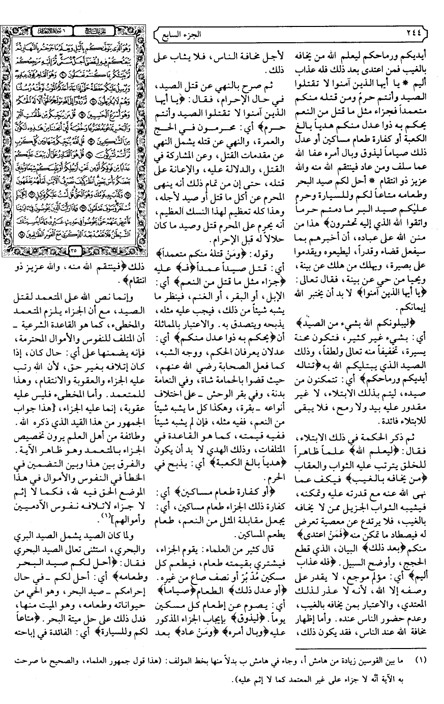 {أُحِلَّ لَكُمْ صَيْدُ الْبَحْرِ وَطَعَامُهُ مَتَاعًا لَكُمْ وَلِلسَّيَّارَةِ وَحُرِّمَ عَلَيْكُمْ صَيْدُ الْبَرِّ مَا دُمْتُمْ حُرُمًا وَاتَّقُوا اللَّهَ الَّذِي إِلَيْهِ تُحْشَرُونَ} .