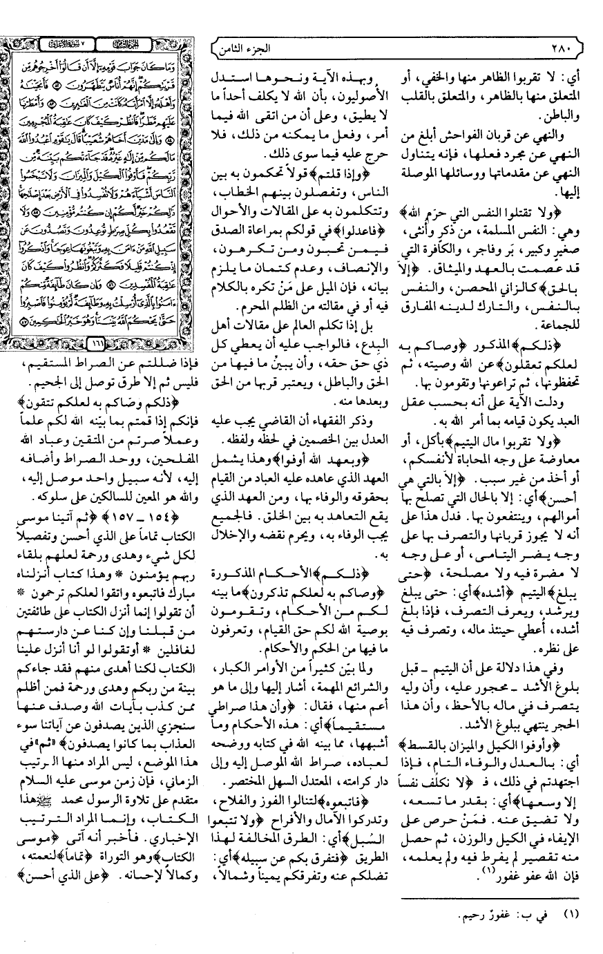 {وَلا تَقْرَبُوا مَالَ الْيَتِيمِ إِلا بِالَّتِي هِيَ أَحْسَنُ حَتَّى يَبْلُغَ أَشُدَّهُ وَأَوْفُوا الْكَيْلَ وَالْمِيزَانَ بِالْقِسْطِ لا نُكَلِّفُ نَفْسًا إِلا وُسْعَهَا وَإِذَا قُلْتُمْ فَاعْدِلُوا وَلَوْ كَانَ ذَا قُرْبَى وَبِعَهْدِ اللَّهِ أَوْفُوا ذَلِكُمْ وَصَّاكُمْ بِهِ لَعَلَّكُمْ تَذَكَّرُونَ * وَأَنَّ هَذَا صِرَاطِي مُسْتَقِيمًا فَاتَّبِعُوهُ وَلا تَتَّبِعُوا السُّبُلَ فَتَفَرَّقَ بِكُمْ عَنْ سَبِيلِهِ ذَلِكُمْ وَصَّاكُمْ بِهِ لَعَلَّكُمْ تَتَّقُونَ} .
