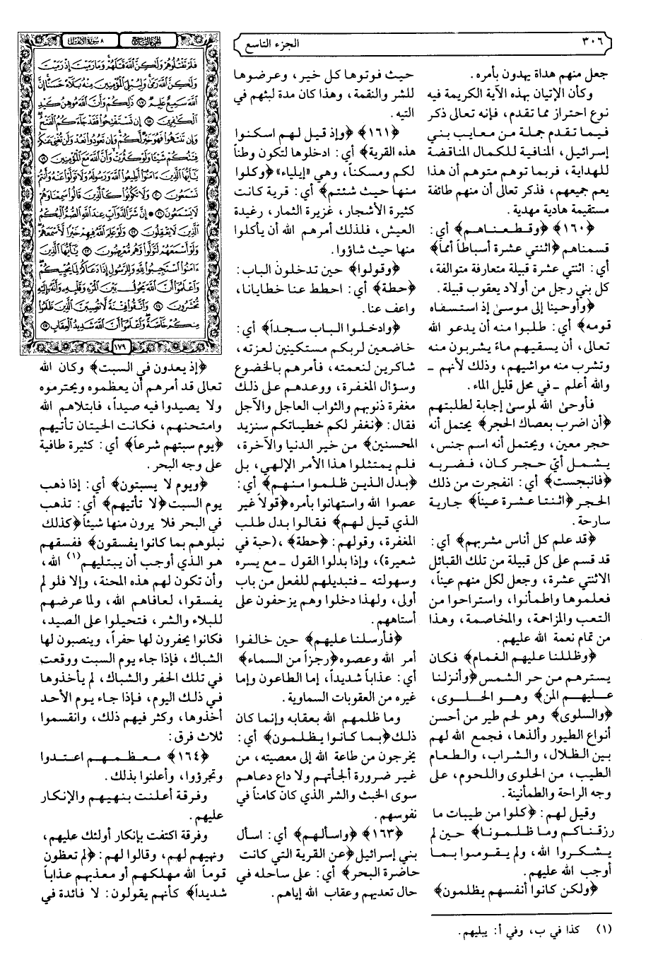 {163} {وَاسْأَلْهُمْ} أي: اسأل بني إسرائيل {عَنِ الْقَرْيَةِ الَّتِي كَانَتْ حَاضِرَةَ الْبَحْرِ} أي: على ساحله في حال تعديهم وعقاب الله إياهم.