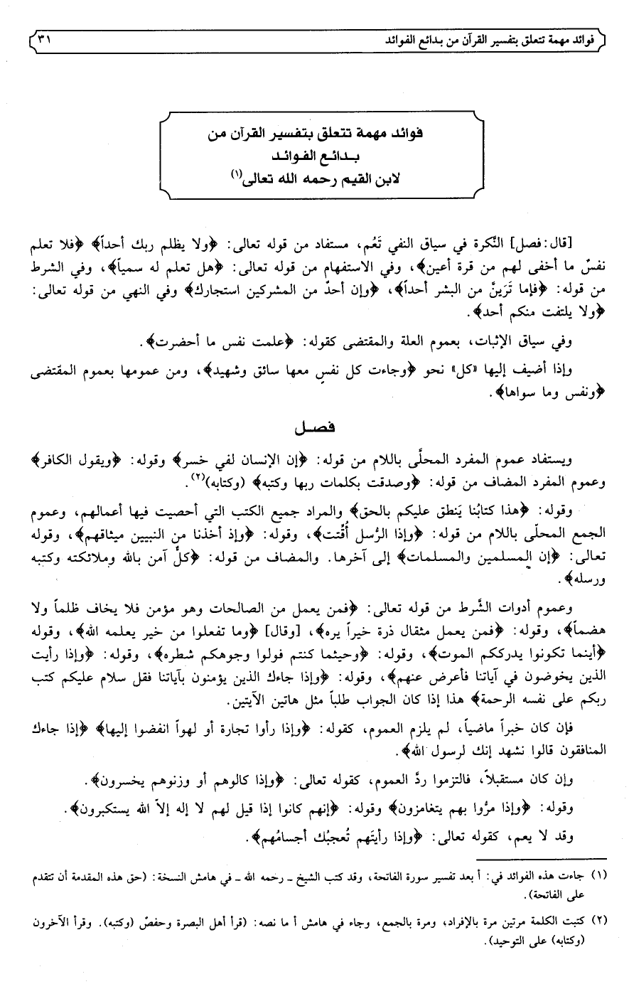 فوائد مهمة تتعلق بتفسير القرآن من بدائع الفوائد