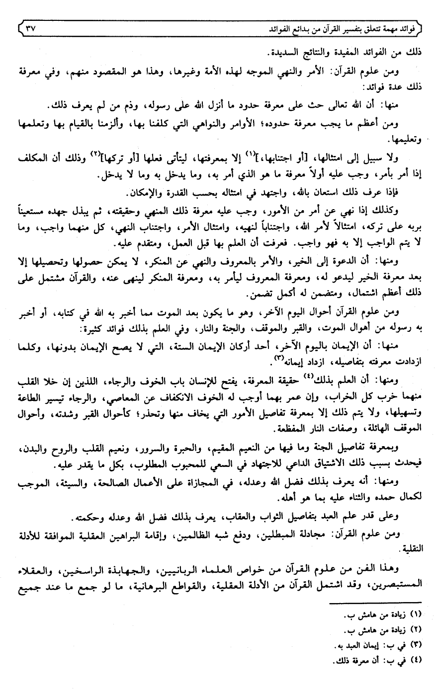 وكذلك إذا نهي عن أمر من الأمور، وجب عليه معرفة ذلك المنهي وحقيقته، ثم يبذل جهده مستعينا بربه على تركه، امتثالا لأمر الله، واجتنابا لنهيه، وامتثال الأمر، واجتناب النهي، كل منهما واجب، وما لا يتم الواجب إلا به فهو واجب. فعرفت أن العلم بها قبل العمل، ومتقدم عليه.