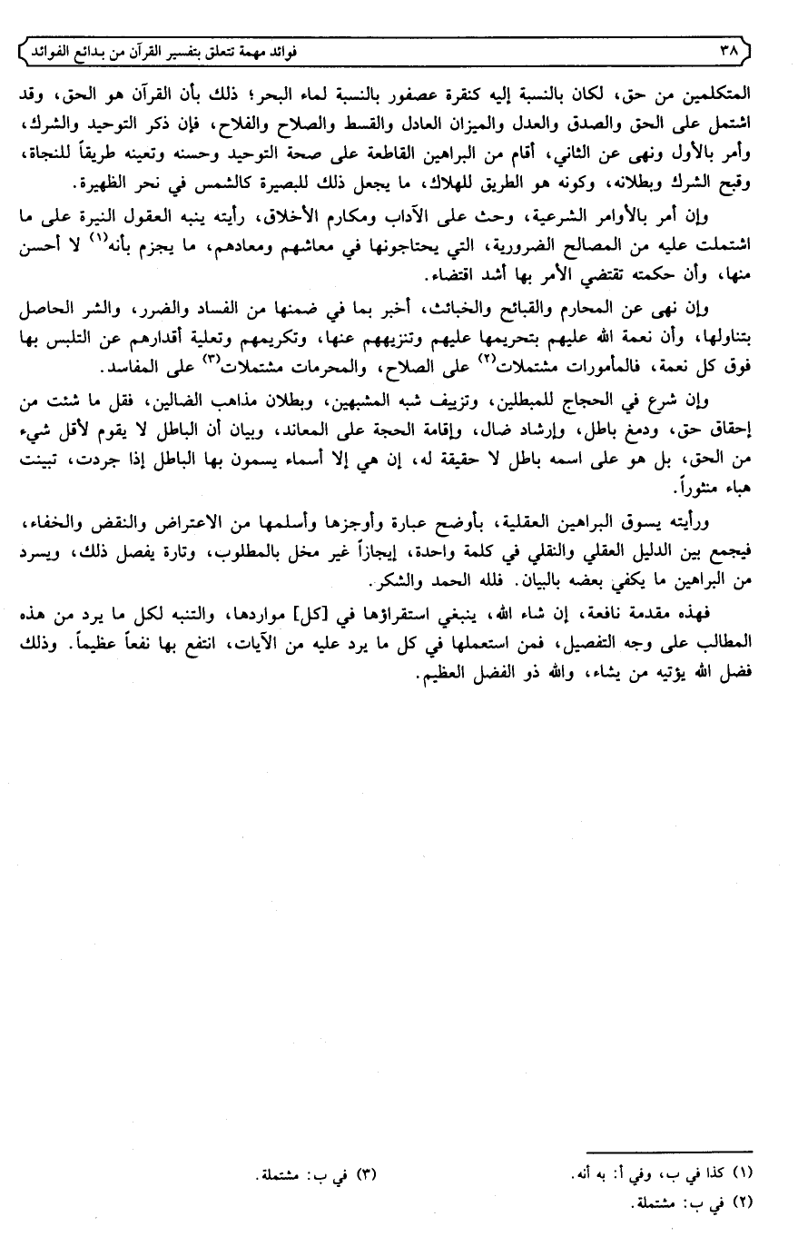 فهذه مقدمة نافعة، إن شاء الله، ينبغي استقراؤها في [كل] مواردها، والتنبه لكل ما يرد من هذه المطالب على وجه التفصيل، فمن استعملها في كل ما يرد عليه من الآيات، انتفع بها نفعا عظيما. وذلك فضل الله يؤتيه من يشاء، والله ذو الفضل العظيم.