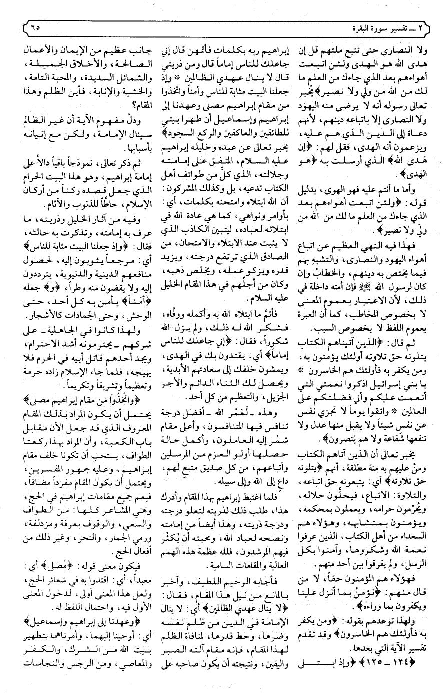 {124 - 125} {وَإِذِ ابْتَلَى إِبْرَاهِيمَ رَبُّهُ بِكَلِمَاتٍ فَأَتَمَّهُنَّ قَالَ إِنِّي جَاعِلُكَ لِلنَّاسِ إِمَامًا قَالَ وَمِنْ ذُرِّيَّتِي قَالَ لا يَنَالُ عَهْدِي الظَّالِمِينَ * وَإِذْ جَعَلْنَا الْبَيْتَ مَثَابَةً لِلنَّاسِ وَأَمْنًا وَاتَّخِذُوا مِنْ مَقَامِ إِبْرَاهِيمَ مُصَلًّى وَعَهِدْنَا إِلَى إِبْرَاهِيمَ وَإِسْمَاعِيلَ أَنْ طَهِّرَا بَيْتِيَ لِلطَّائِفِينَ وَالْعَاكِفِينَ وَالرُّكَّعِ السُّجُودِ} .