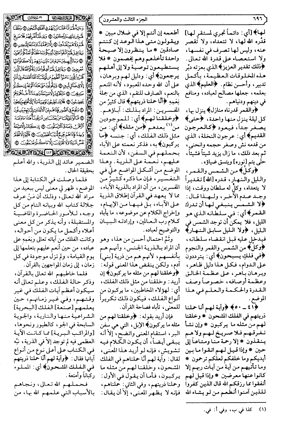 وثَمَّ احتمال أحسن من هذا، وهو أن المراد بالذرية الجنس، وأنهم هم بأنفسهم، لأنهم هم من ذرية [بني] آدم، ولكن ينقض هذا المعنى قوله: {وَخَلَقْنَا لَهُمْ مِنْ مِثْلِهِ مَا يَرْكَبُونَ} إن أريد: وخلقنا من مثل ذلك الفلك، أي: لهؤلاء المخاطبين، ما يركبون من أنواع الفلك، فيكون ذلك تكريرا للمعنى، تأباه فصاحة القرآن. فإن أريد بقوله: {وَخَلَقْنَا لَهُمْ مِنْ مِثْلِهِ مَا يَرْكَبُونَ} الإبل، التي هي سفن البر، استقام المعنى واتضح، إلا أنه يبقى أيضا، أن يكون الكلام فيه تشويش، فإنه لو أريد هذا المعنى، لقال: وَآيَةٌ لَهُمْ أَنَّا حَمَلْنَاهم فِي الْفُلْكِ الْمَشْحُون، ِ وَخَلَقْنَا لَهُمْ مِنْ مِثْلِهِ مَا يَرْكَبُونَ، فأما أن يقول في الأول: وحملنا ذريتهم، وفي الثاني: حملناهم، فإنه لا يظهر المعنى، إلا أن يقال: الضمير عائد إلى الذرية، والله أعلم بحقيقة الحال.