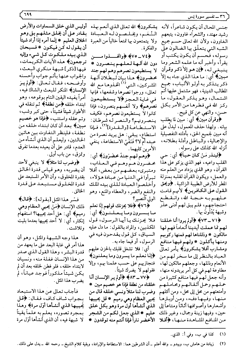 تم تفسير سورة يس، فلله [تعالى] الحمد كما ينبغي لجلاله، وله الثناء كما يليق بكماله، وله المجد كما تستدعيه عظمته وكبرياؤه، وصلى الله على محمد وآله وسلم.