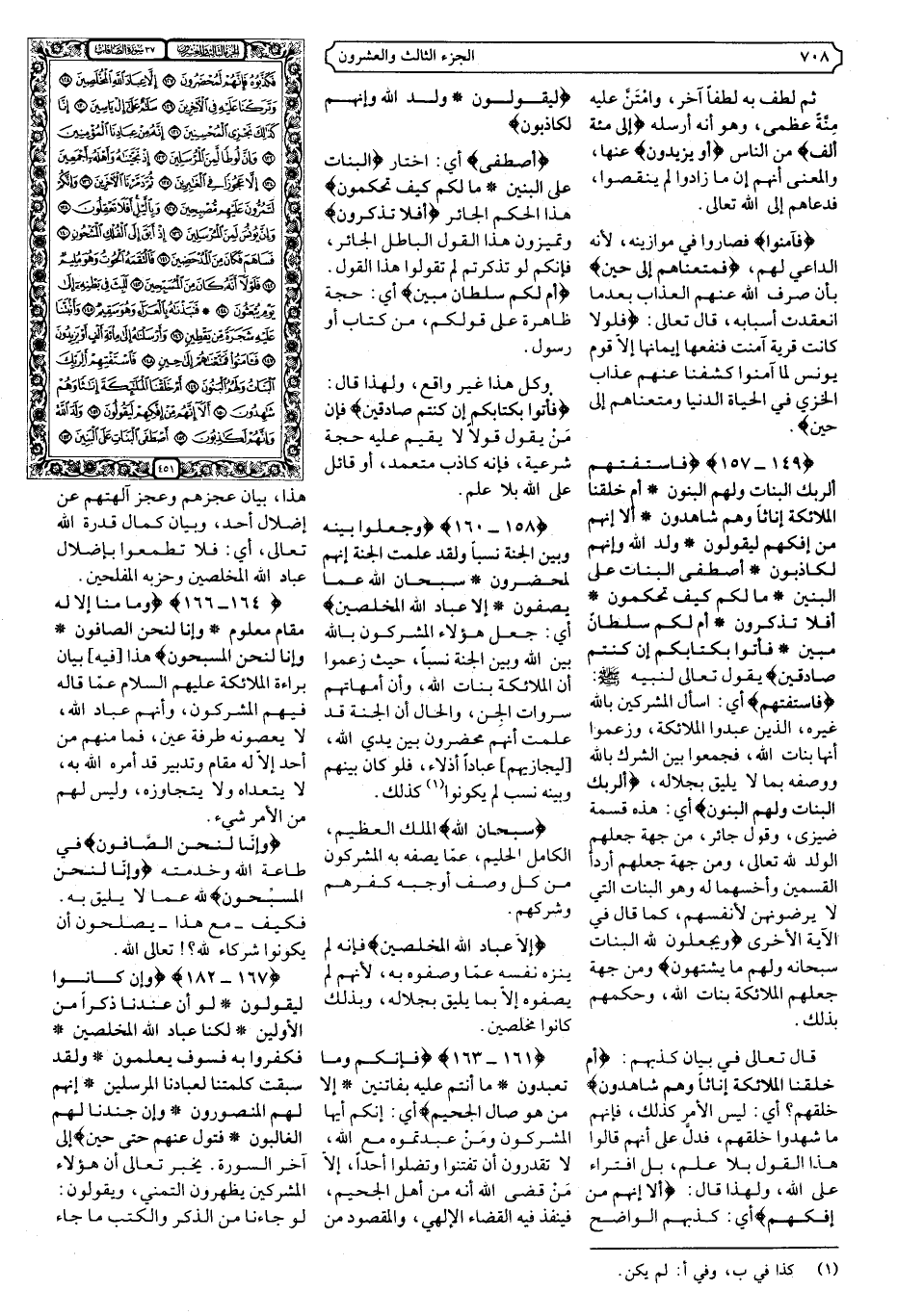 {149 - 157} {فَاسْتَفْتِهِمْ أَلِرَبِّكَ الْبَنَاتُ وَلَهُمُ الْبَنُونَ * أَمْ خَلَقْنَا الْمَلائِكَةَ إِنَاثًا وَهُمْ شَاهِدُونَ * أَلا إِنَّهُمْ مِنْ إِفْكِهِمْ لَيَقُولُونَ * وَلَدَ اللَّهُ وَإِنَّهُمْ لَكَاذِبُونَ * أَصْطَفَى الْبَنَاتِ عَلَى الْبَنِينَ} .