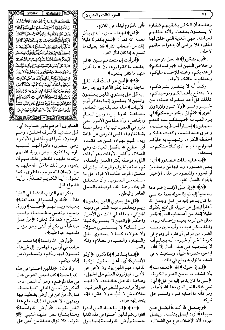 {10} {قُلْ يَا عِبَادِي الَّذِينَ آمَنُوا اتَّقُوا رَبَّكُمْ لِلَّذِينَ أَحْسَنُوا فِي هَذِهِ الدُّنْيَا حَسَنَةٌ وَأَرْضُ اللَّهِ وَاسِعَةٌ إِنَّمَا يُوَفَّى الصَّابِرُونَ أَجْرَهُمْ بِغَيْرِ حِسَابٍ} .