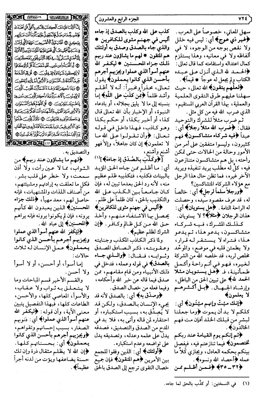 {32 - 35} {فَمَنْ أَظْلَمُ مِمَّنْ كَذَبَ عَلَى اللَّهِ وَكَذَّبَ بِالصِّدْقِ إِذْ جَاءَهُ أَلَيْسَ فِي جَهَنَّمَ مَثْوًى لِلْكَافِرِينَ * وَالَّذِي جَاءَ بِالصِّدْقِ وَصَدَّقَ بِهِ أُولَئِكَ هُمُ الْمُتَّقُونَ * لَهُمْ مَا يَشَاءُونَ عِنْدَ رَبِّهِمْ ذَلِكَ جَزَاءُ الْمُحْسِنِينَ * لِيُكَفِّرَ اللَّهُ عَنْهُمْ أَسْوَأَ الَّذِي عَمِلُوا وَيَجْزِيَهُمْ أَجْرَهُمْ بِأَحْسَنِ الَّذِي كَانُوا يَعْمَلُونَ} .