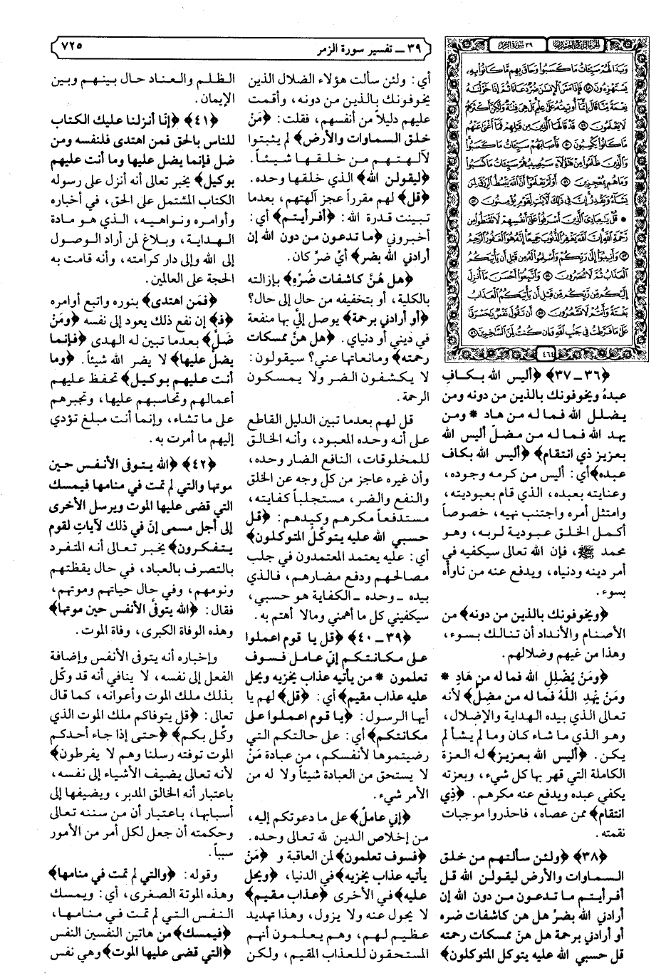 {38} {وَلَئِنْ سَأَلْتَهُمْ مَنْ خَلَقَ السَّمَاوَاتِ وَالأرْضَ لَيَقُولُنَّ اللَّهُ قُلْ أَفَرَأَيْتُمْ مَا تَدْعُونَ مِنْ دُونِ اللَّهِ إِنْ أَرَادَنِيَ اللَّهُ بِضُرٍّ هَلْ هُنَّ كَاشِفَاتُ ضُرِّهِ أَوْ أَرَادَنِي بِرَحْمَةٍ هَلْ هُنَّ مُمْسِكَاتُ رَحْمَتِهِ قُلْ حَسْبِيَ اللَّهُ عَلَيْهِ يَتَوَكَّلُ الْمُتَوَكِّلُونَ} .