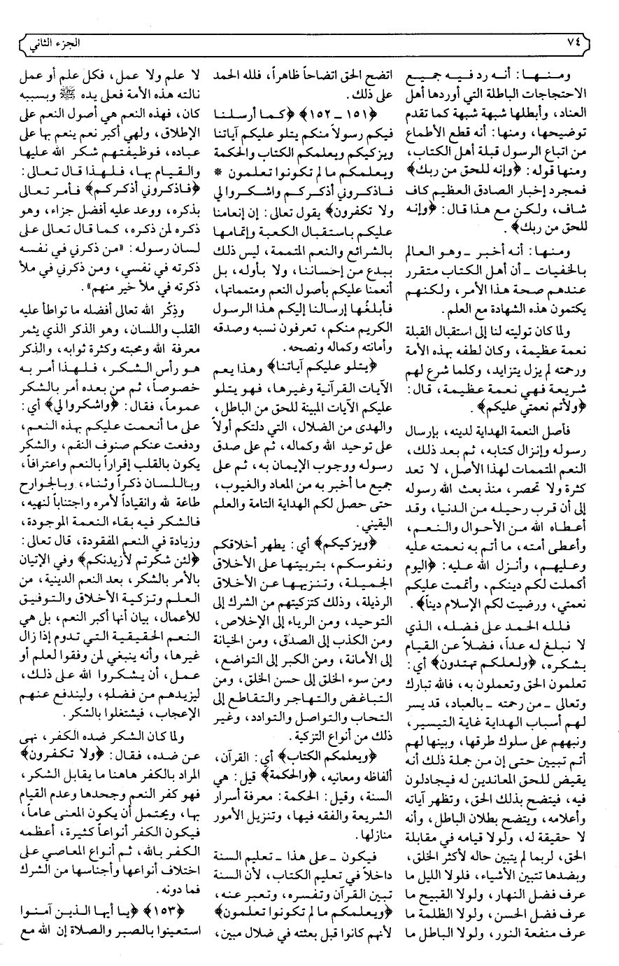 {151 - 152} {كَمَا أَرْسَلْنَا فِيكُمْ رَسُولا مِنْكُمْ يَتْلُو عَلَيْكُمْ آيَاتِنَا وَيُزَكِّيكُمْ وَيُعَلِّمُكُمُ الْكِتَابَ وَالْحِكْمَةَ وَيُعَلِّمُكُمْ مَا لَمْ تَكُونُوا تَعْلَمُونَ * فَاذْكُرُونِي أَذْكُرْكُمْ وَاشْكُرُوا لِي وَلا تَكْفُرُونِ} .