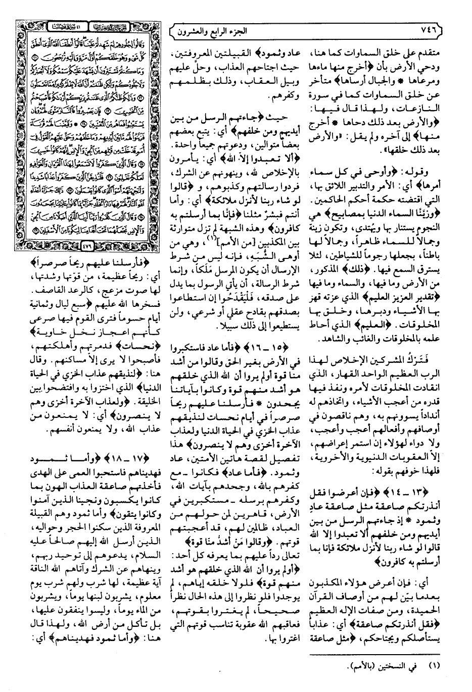 {15 - 16} {فَأَمَّا عَادٌ فَاسْتَكْبَرُوا فِي الأرْضِ بِغَيْرِ الْحَقِّ وَقَالُوا مَنْ أَشَدُّ مِنَّا قُوَّةً أَوَلَمْ يَرَوْا أَنَّ اللَّهَ الَّذِي خَلَقَهُمْ هُوَ أَشَدُّ مِنْهُمْ قُوَّةً وَكَانُوا بِآيَاتِنَا يَجْحَدُونَ * فَأَرْسَلْنَا عَلَيْهِمْ رِيحًا صَرْصَرًا فِي أَيَّامٍ نَحِسَاتٍ لِنُذِيقَهُمْ عَذَابَ الْخِزْيِ فِي الْحَيَاةِ الدُّنْيَا وَلَعَذَابُ الآخِرَةِ أَخْزَى وَهُمْ لا يُنْصَرُونَ} .