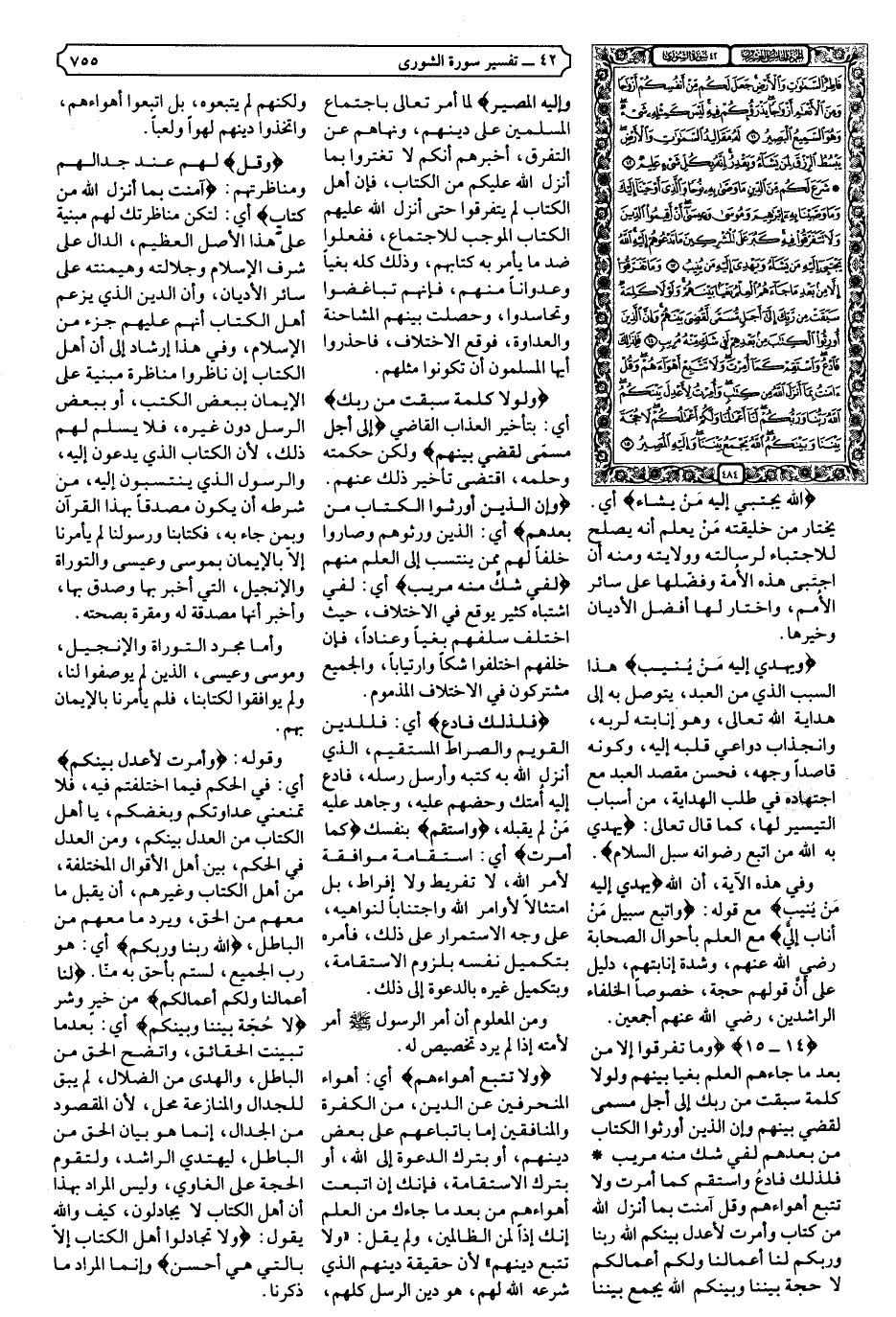 {14-15} {وَمَا تَفَرَّقُوا إِلا مِنْ بَعْدِ مَا جَاءَهُمُ الْعِلْمُ بَغْيًا بَيْنَهُمْ وَلَوْلا كَلِمَةٌ سَبَقَتْ مِنْ رَبِّكَ إِلَى أَجَلٍ مُسَمًّى لَقُضِيَ بَيْنَهُمْ وَإِنَّ الَّذِينَ أُورِثُوا الْكِتَابَ مِنْ بَعْدِهِمْ لَفِي شَكٍّ مِنْهُ مُرِيبٍ * فَلِذَلِكَ فَادْعُ وَاسْتَقِمْ كَمَا أُمِرْتَ وَلا تَتَّبِعْ أَهْوَاءَهُمْ وَقُلْ آمَنْتُ بِمَا أَنْزَلَ اللَّهُ مِنْ كِتَابٍ وَأُمِرْتُ لأعْدِلَ بَيْنَكُمُ اللَّهُ رَبُّنَا وَرَبُّكُمْ لَنَا أَعْمَالُنَا وَلَكُمْ أَعْمَالُكُمْ لا حُجَّةَ بَيْنَنَا وَبَيْنَكُمُ اللَّهُ يَجْمَعُ بَيْنَنَا وَإِلَيْهِ الْمَصِيرُ} .