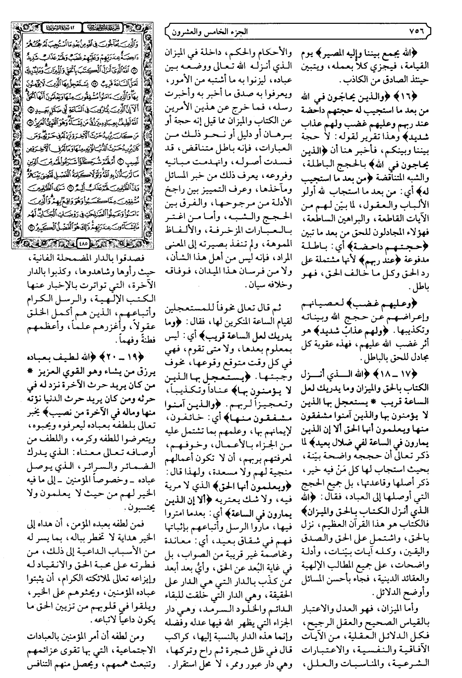 {17-18} {اللَّهُ الَّذِي أَنْزَلَ الْكِتَابَ بِالْحَقِّ وَالْمِيزَانَ وَمَا يُدْرِيكَ لَعَلَّ السَّاعَةَ قَرِيبٌ * يَسْتَعْجِلُ بِهَا الَّذِينَ لا يُؤْمِنُونَ بِهَا وَالَّذِينَ آمَنُوا مُشْفِقُونَ مِنْهَا وَيَعْلَمُونَ أَنَّهَا الْحَقُّ أَلا إِنَّ الَّذِينَ يُمَارُونَ فِي السَّاعَةِ لَفِي ضَلالٍ بَعِيدٍ} .