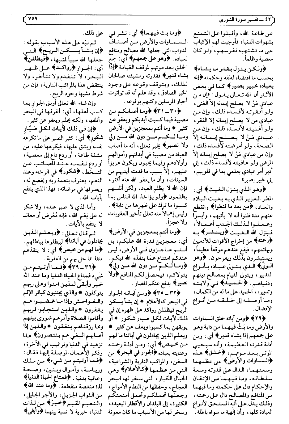 {32-35} {وَمِنْ آيَاتِهِ الْجَوَارِ فِي الْبَحْرِ كَالأعْلامِ * إِنْ يَشَأْ يُسْكِنِ الرِّيحَ فَيَظْلَلْنَ رَوَاكِدَ عَلَى ظَهْرِهِ إِنَّ فِي ذَلِكَ لآيَاتٍ لِكُلِّ صَبَّارٍ شَكُورٍ * أَوْ يُوبِقْهُنَّ بِمَا كَسَبُوا وَيَعْفُ عَنْ كَثِيرٍ * وَيَعْلَمَ الَّذِينَ يُجَادِلُونَ فِي آيَاتِنَا مَا لَهُمْ مِنْ مَحِيصٍ} .
