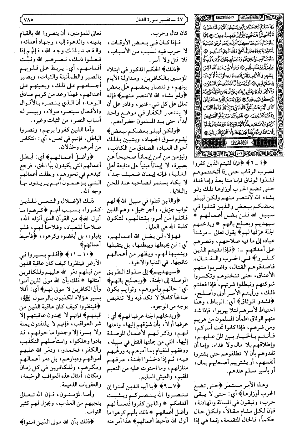 {7-9} {يَا أَيُّهَا الَّذِينَ آمَنُوا إِنْ تَنْصُرُوا اللَّهَ يَنْصُرْكُمْ وَيُثَبِّتْ أَقْدَامَكُمْ * وَالَّذِينَ كَفَرُوا فَتَعْسًا لَهُمْ وَأَضَلَّ أَعْمَالَهُمْ * ذَلِكَ بِأَنَّهُمْ كَرِهُوا مَا أَنْزَلَ اللَّهُ فَأَحْبَطَ أَعْمَالَهُمْ} .