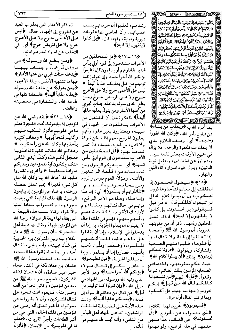 {16-17} {قُلْ لِلْمُخَلَّفِينَ مِنَ الأعْرَابِ سَتُدْعَوْنَ إِلَى قَوْمٍ أُولِي بَأْسٍ شَدِيدٍ تُقَاتِلُونَهُمْ أَوْ يُسْلِمُونَ فَإِنْ تُطِيعُوا يُؤْتِكُمُ اللَّهُ أَجْرًا حَسَنًا وَإِنْ تَتَوَلَّوْا كَمَا تَوَلَّيْتُمْ مِنْ قَبْلُ يُعَذِّبْكُمْ عَذَابًا أَلِيمًا * لَيْسَ عَلَى الأعْمَى حَرَجٌ وَلا عَلَى الأعْرَجِ حَرَجٌ وَلا عَلَى الْمَرِيضِ حَرَجٌ وَمَنْ يُطِعِ اللَّهَ وَرَسُولَهُ يُدْخِلْهُ جَنَّاتٍ تَجْرِي مِنْ تَحْتِهَا الأنْهَارُ وَمَنْ يَتَوَلَّ يُعَذِّبْهُ عَذَابًا أَلِيمًا} .