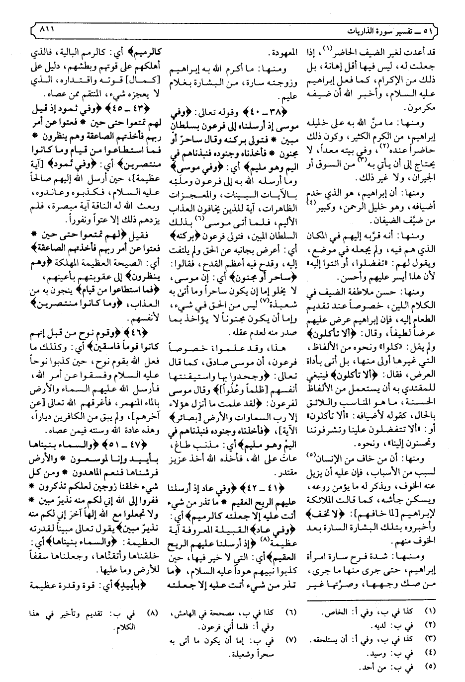 {38-40} {وَفِي مُوسَى إِذْ أَرْسَلْنَاهُ إِلَى فِرْعَوْنَ بِسُلْطَانٍ مُبِينٍ * فَتَوَلَّى بِرُكْنِهِ وَقَالَ سَاحِرٌ أَوْ مَجْنُونٌ * فَأَخَذْنَاهُ وَجُنُودَهُ فَنَبَذْنَاهُمْ فِي الْيَمِّ وَهُوَ مُلِيمٌ} .