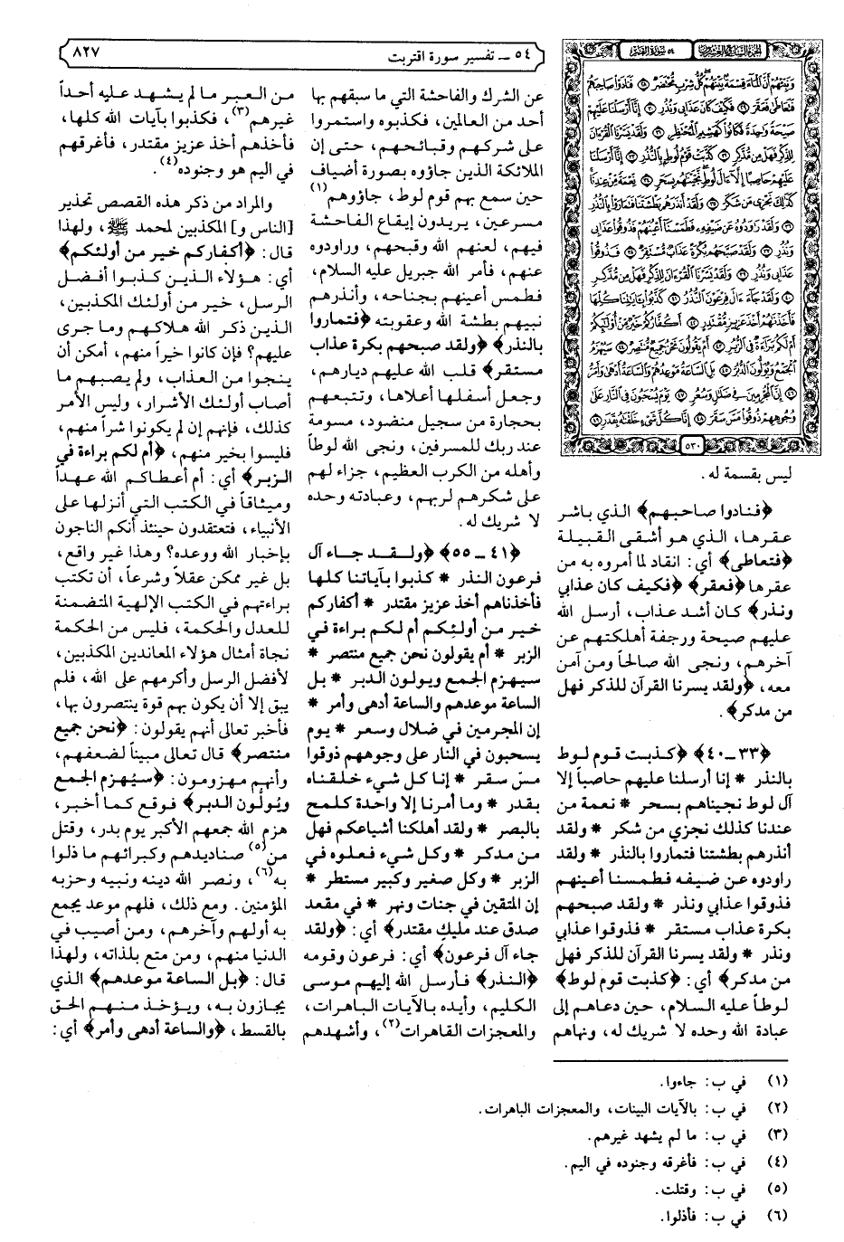 {41-55} {وَلَقَدْ جَاءَ آلَ فِرْعَوْنَ النُّذُرُ * كَذَّبُوا بِآيَاتِنَا كُلِّهَا فَأَخَذْنَاهُمْ أَخْذَ عَزِيزٍ مُقْتَدِرٍ * أَكُفَّارُكُمْ خَيْرٌ مِنْ أُولَئِكُمْ أَمْ لَكُمْ بَرَاءَةٌ فِي الزُّبُرِ * أَمْ يَقُولُونَ نَحْنُ جَمِيعٌ مُنْتَصِرٌ * سَيُهْزَمُ الْجَمْعُ وَيُوَلُّونَ الدُّبُرَ * بَلِ السَّاعَةُ مَوْعِدُهُمْ وَالسَّاعَةُ أَدْهَى وَأَمَرُّ * إِنَّ الْمُجْرِمِينَ فِي ضَلالٍ وَسُعُرٍ * يَوْمَ يُسْحَبُونَ فِي النَّارِ عَلَى وُجُوهِهِمْ ذُوقُوا مَسَّ سَقَرَ * إِنَّا كُلَّ شَيْءٍ خَلَقْنَاهُ بِقَدَرٍ} .
