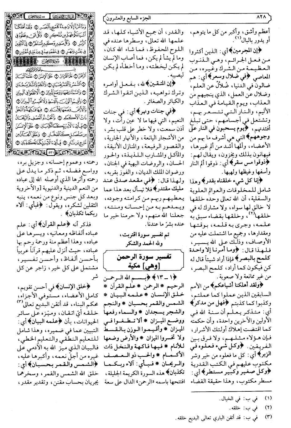 {1-13} {بِسْمِ اللَّهِ الرَّحْمَنِ الرَّحِيمِ * الرَّحْمَنُ * عَلَّمَ الْقُرْآنَ * خَلَقَ الإنْسَانَ * عَلَّمَهُ الْبَيَانَ * الشَّمْسُ وَالْقَمَرُ بِحُسْبَانٍ * وَالنَّجْمُ وَالشَّجَرُ يَسْجُدَانِ * وَالسَّمَاءَ رَفَعَهَا وَوَضَعَ الْمِيزَانَ * أَلا تَطْغَوْا فِي الْمِيزَانِ * وَأَقِيمُوا الْوَزْنَ بِالْقِسْطِ وَلا تُخْسِرُوا الْمِيزَانَ * وَالأرْضَ وَضَعَهَا لِلأنَامِ * فِيهَا فَاكِهَةٌ وَالنَّخْلُ ذَاتُ الأكْمَامِ * وَالْحَبُّ ذُو الْعَصْفِ وَالرَّيْحَانُ * فَبِأَيِّ آلاءِ رَبِّكُمَا تُكَذِّبَانِ} .