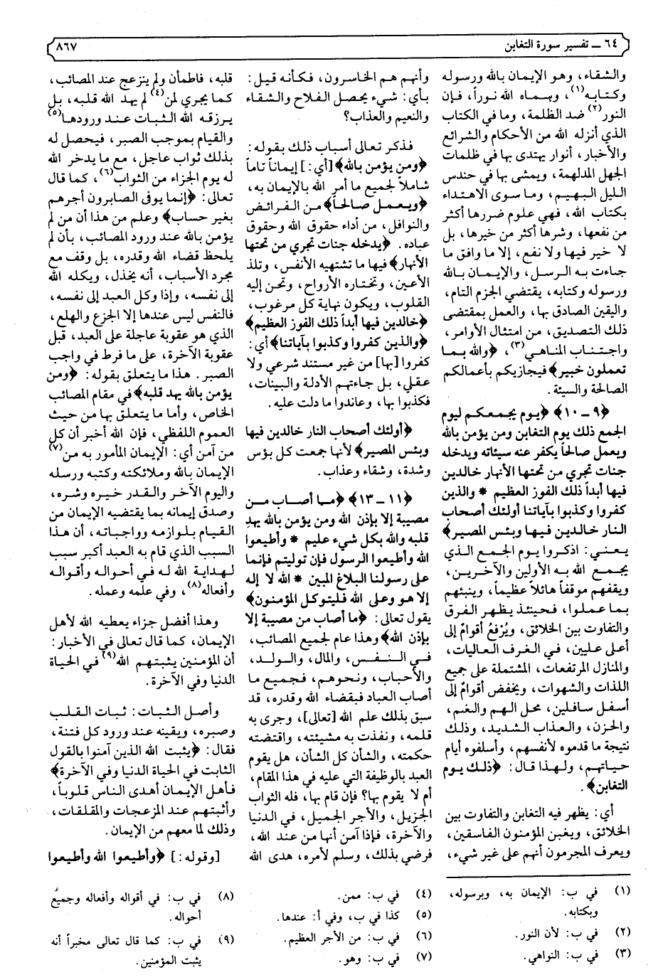 {11-13} {مَا أَصَابَ مِنْ مُصِيبَةٍ إِلا بِإِذْنِ اللَّهِ وَمَنْ يُؤْمِنْ بِاللَّهِ يَهْدِ قَلْبَهُ وَاللَّهُ بِكُلِّ شَيْءٍ عَلِيمٌ * وَأَطِيعُوا اللَّهَ وَأَطِيعُوا الرَّسُولَ فَإِنْ تَوَلَّيْتُمْ فَإِنَّمَا عَلَى رَسُولِنَا الْبَلاغُ الْمُبِينُ * اللَّهُ لا إِلَهَ إِلا هُوَ وَعَلَى اللَّهِ فَلْيَتَوَكَّلِ الْمُؤْمِنُونَ} .