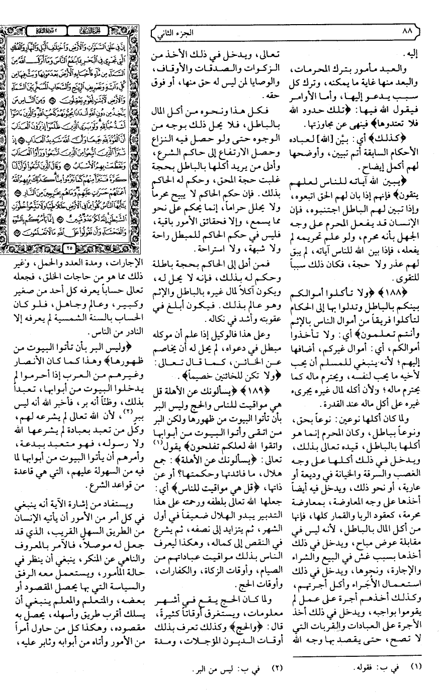 {188} {وَلا تَأْكُلُوا أَمْوَالَكُمْ بَيْنَكُمْ بِالْبَاطِلِ وَتُدْلُوا بِهَا إِلَى الْحُكَّامِ لِتَأْكُلُوا فَرِيقًا مِنْ أَمْوَالِ النَّاسِ بِالإثْمِ وَأَنْتُمْ تَعْلَمُونَ} .