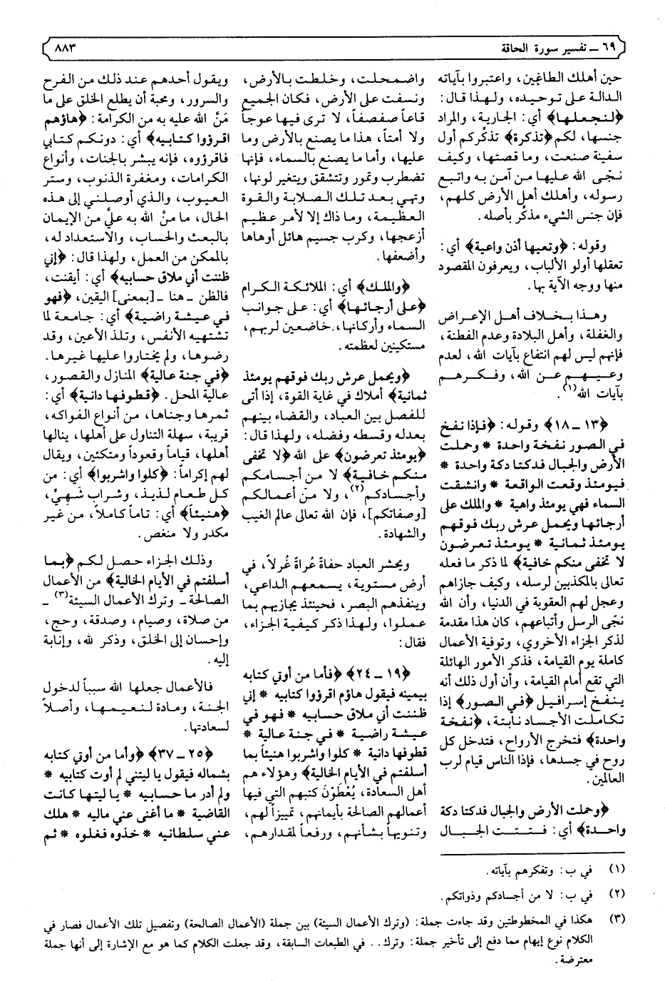 (1) هكذا في المخطوطتين وقد جاءت جملة: (وترك الأعمال الشيئة) بين جملة (الأعمال الصالحة) وتفصيل تلك الأعمال فصار في الكلام نوع إيهام مما دفع إلى تأخير جملة: وترك. في الطبعات السابقة، وقد جعلت الكلام كما هو مع الإشارة إلى أنها جملة معترضة.