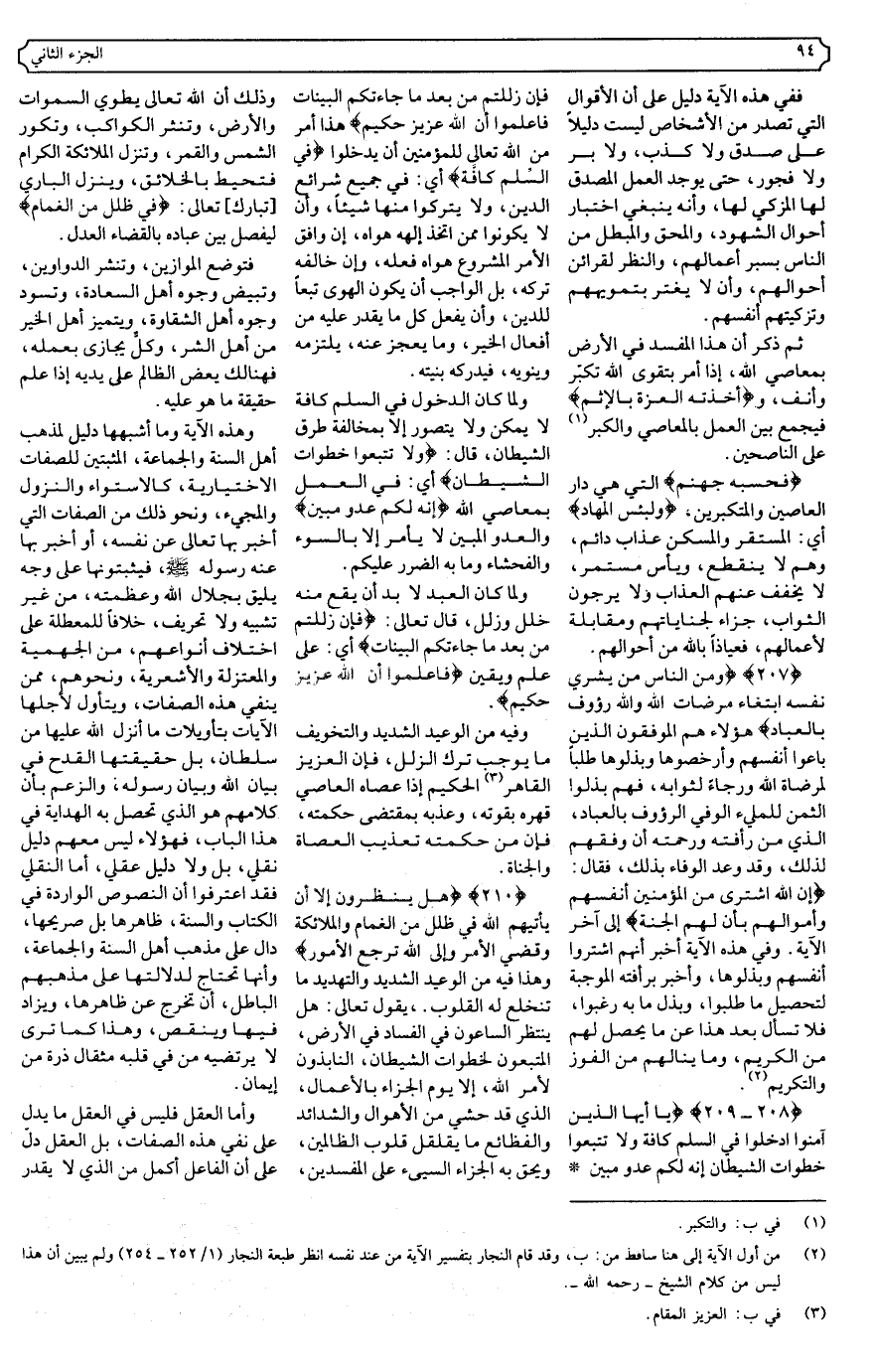 (1) من أول الآية إلى هنا ساقط من ب، وقد قام النجار بتفسير الآية من عند نفسه انظر طبعة النجار (1/252-254) ولم يبين أن هذا ليس من كلام الشيخ -رحمه الله-.