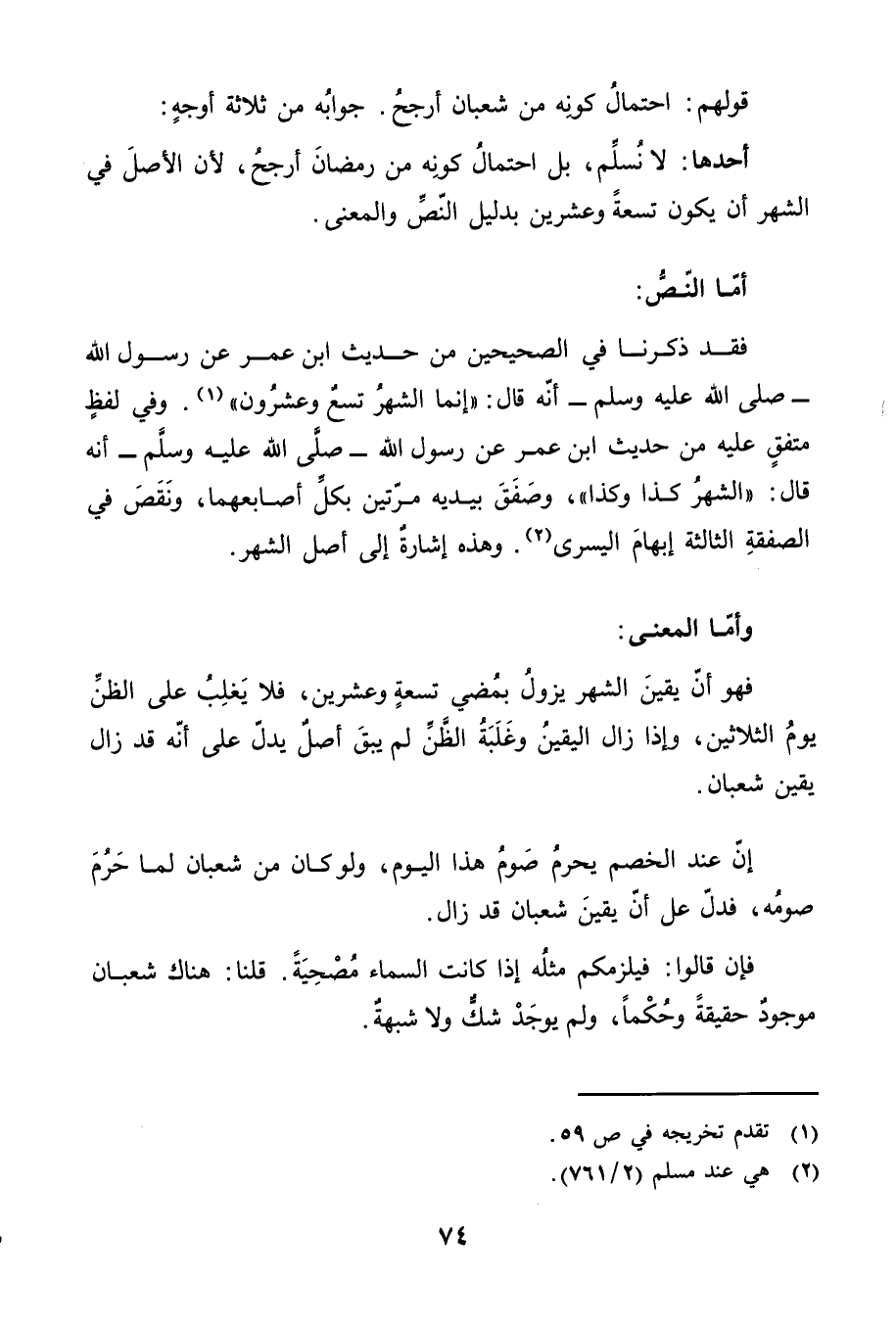 فإن قالوا: فيلزمكم مثله إذا كانت السماء مصحيةً. قلنا: هناك شعبان موجودٌ حقيقةً وحكماً، ولم يوجد شكٌّ ولا شبهةٌ.