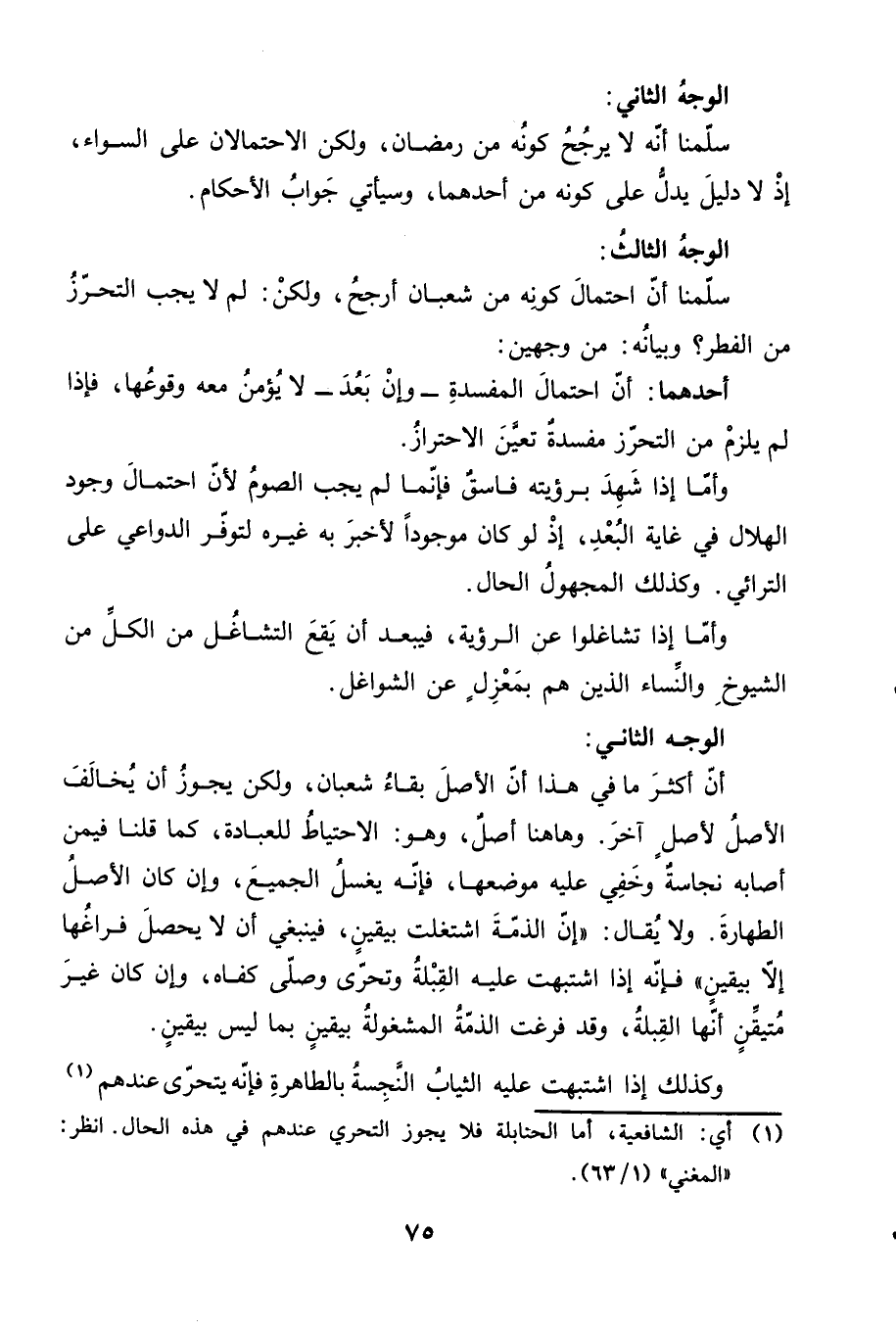 أن أكثر ما في هذا أن الأصل بقاء شعبان، ولكن يجوز أن يخالف الأصل لأصلٍ آخر. وهاهنا أصلٌ، وهو: الاحتياط للعبادة، كما قلنا فيمن أصابه نجاسةٌ وخفي عليه موضعها، فإنه يغسل الجميع، وإن كان الأصل الطهارة. ولا يقال: ((إن الذمة اشتغلت بيقينٍ، فينبغي أن لا يحصل فراغها إلا بيقينٍ)) فإنه إذا اشتبهت عليه القبلة وتحرى وصلى كفاه، وإن كان غير متيقنٍ أنها القبلة، وقد فرغت الذمة المشغولة بيقينٍ بما ليس بيقينٍ.