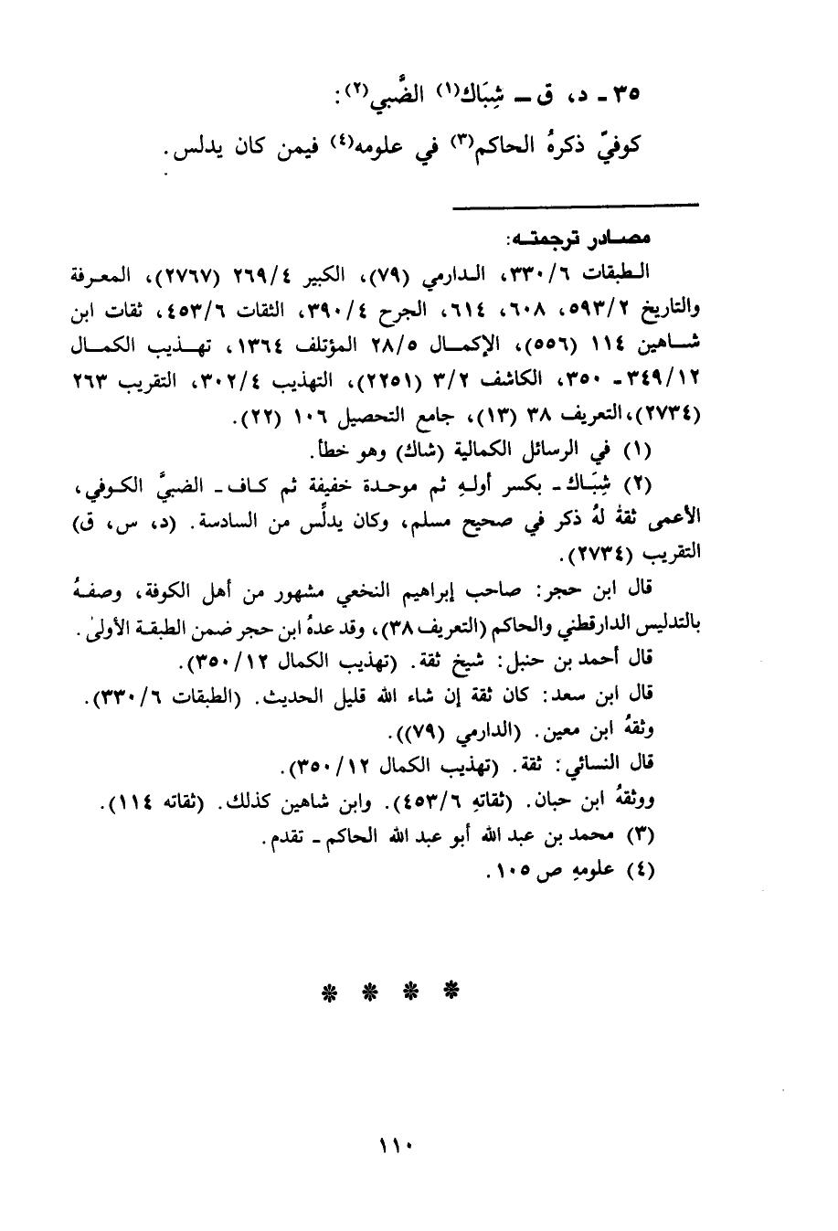 35 - د ق شباك الضبي كوفي ذكره الحاكم في علومه فيمن كان يدلس
