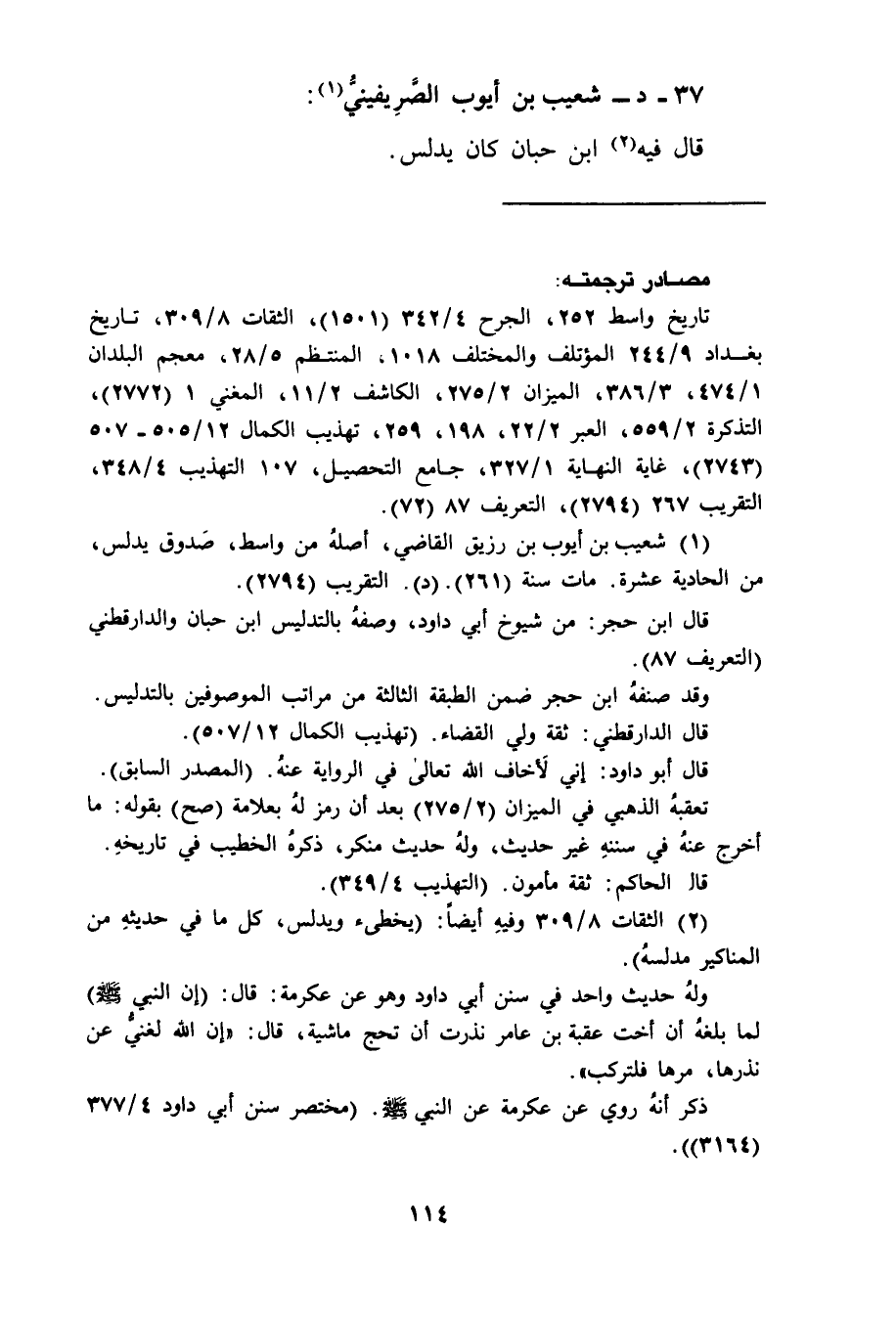 37 - د شعيب بن أيوب الصريفيني قال فيه بن حبان كان يدلس