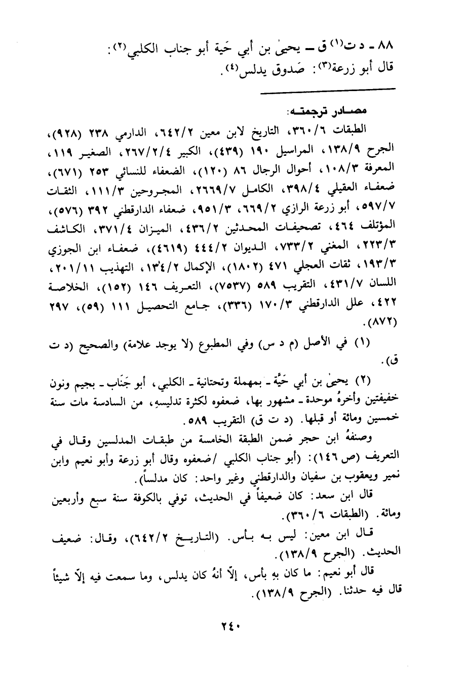 88 - د ت ق يحيى بن أبي حية أبو جناب الكلبي قال أبو زرعة صدوق يدلس