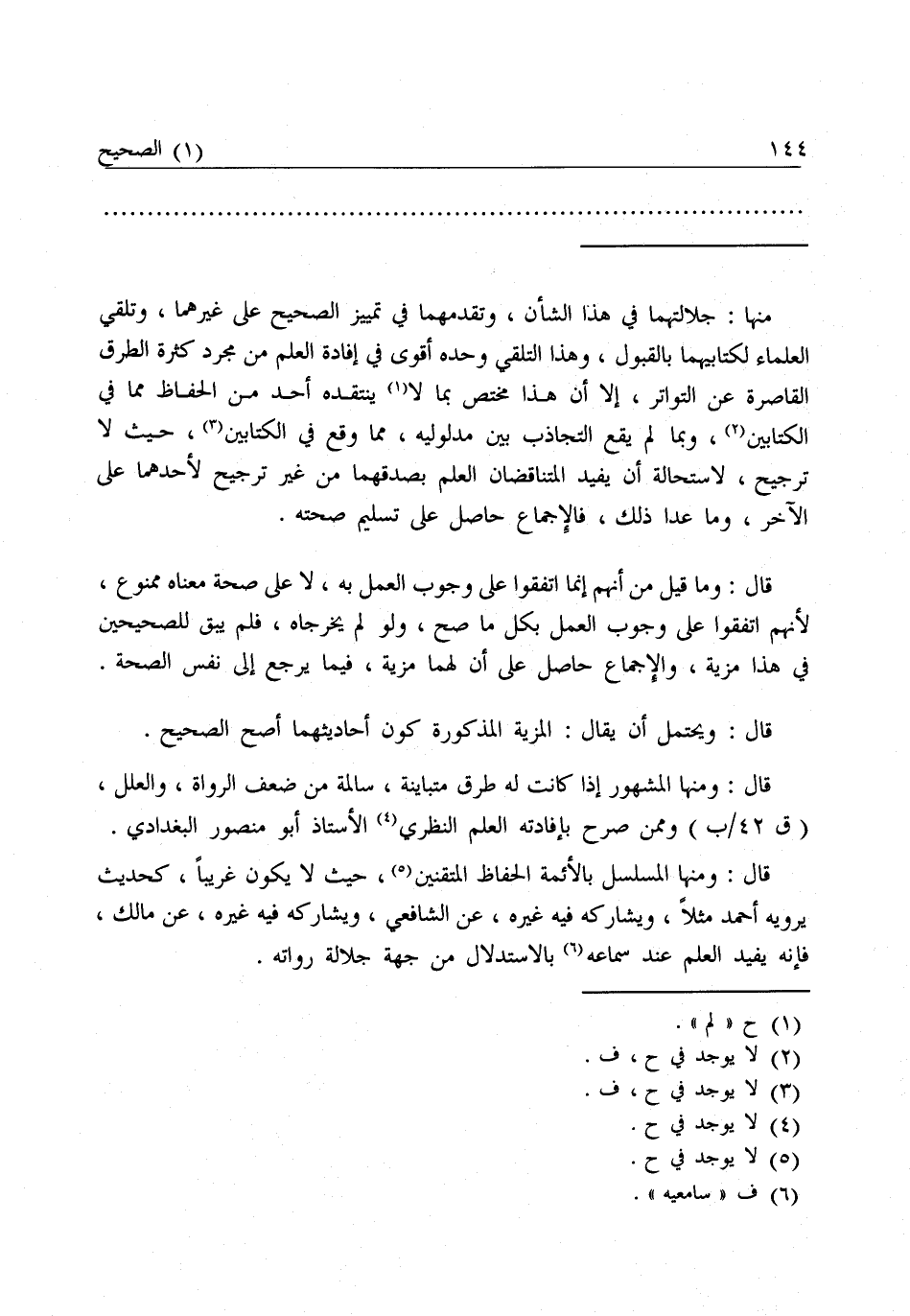 قَالَ: وَيُحْتَمَلُ أَنْ يُقَالَ: الْمَزِيَّةُ الْمَذْكُورَةُ كَوْنُ أَحَادِيثِهِمَا أَصَحَّ الصَّحِيحِ، قَالَ: وَمِنْهَا الْمَشْهُورُ إِذَا كَانَتْ لَهُ طُرُقٌ مُتَبَايِنَةٌ سَالِمَةٌ مِنْ ضَعْفِ الرُّوَاةِ وَالْعِلَلِ، وَمِمَّنْ صَرَّحَ بِإِفَادَتِهِ الْعِلْمَ النَّظَرِيَّ، الْأُسْتَاذُ أَبُو مَنْصُورٍ الْبَغْدَادِيُّ.
