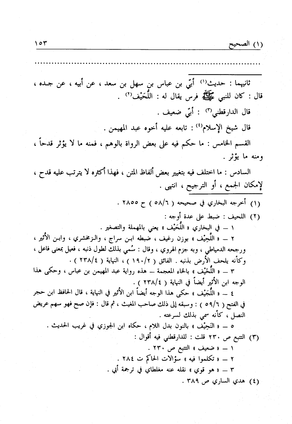 ـــــــــــــــــــــــــــــQثَانِيهِمَا: حَدِيثُ أُبَيِّ بْنِ عَبَّاسِ بْنِ سَهْلِ بْنِ سَعْدٍ عَنْ أَبِيهِ، عَنْ جَدِّهِ، قَالَ: «كَانَ لِلنَّبِيِّ صَلَّى اللَّهُ عَلَيْهِ وَسَلَّمَ فَرَسٌ يُقَالُ لَهُ اللُّحَيْفُ» . قَالَ الدَّارَقُطْنِيُّ؛ أُبَيٌّ ضَعِيفٌ.