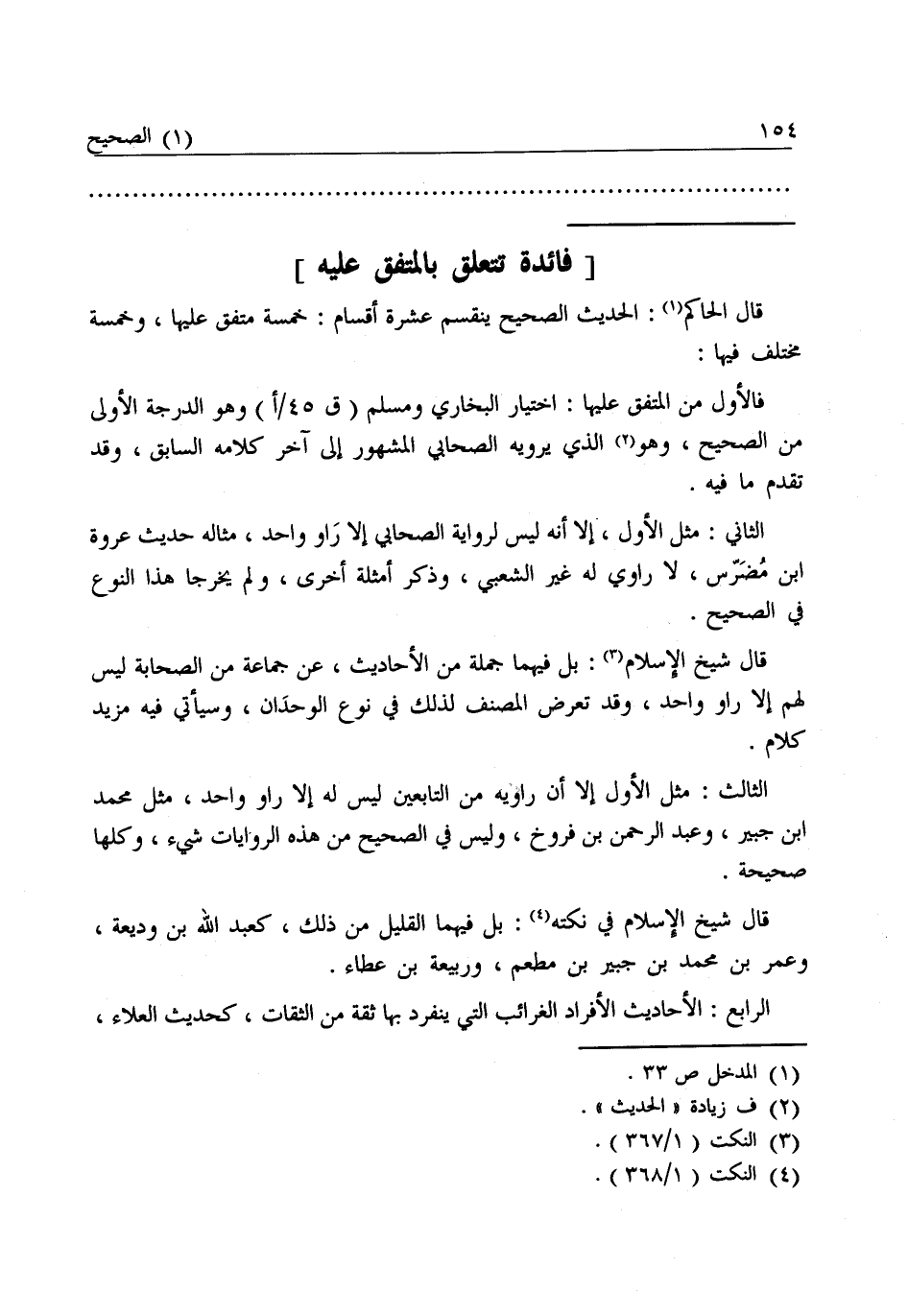 قَالَ الْحَاكِمُ: الْحَدِيثُ الصَّحِيحُ يَنْقَسِمُ عَشَرَةَ أَقْسَامٍ: خَمْسَةٌ مُتَّفَقٌ عَلَيْهَا، وَخَمْسَةٌ مُخْتَلَفٌ فِيهَا: فَالْأَوَّلُ مِنَ الْمُتَّفَقِ عَلَيْهَا: اخْتِيَارُ الْبُخَارِيِّ وَمُسْلِمٍ، وَهُوَ الدَّرَجَةُ الْأُولَى مِنَ الصَّحِيحِ، وَهُوَ الْحَدِيثُ الَّذِي يَرْوِيهِ الصَّحَابِيُّ الْمَشْهُورُ إِلَى آخِرِ كَلَامِهِ السَّابِقِ، وَقَدْ تَقَدَّمَ مَا فِيهِ.