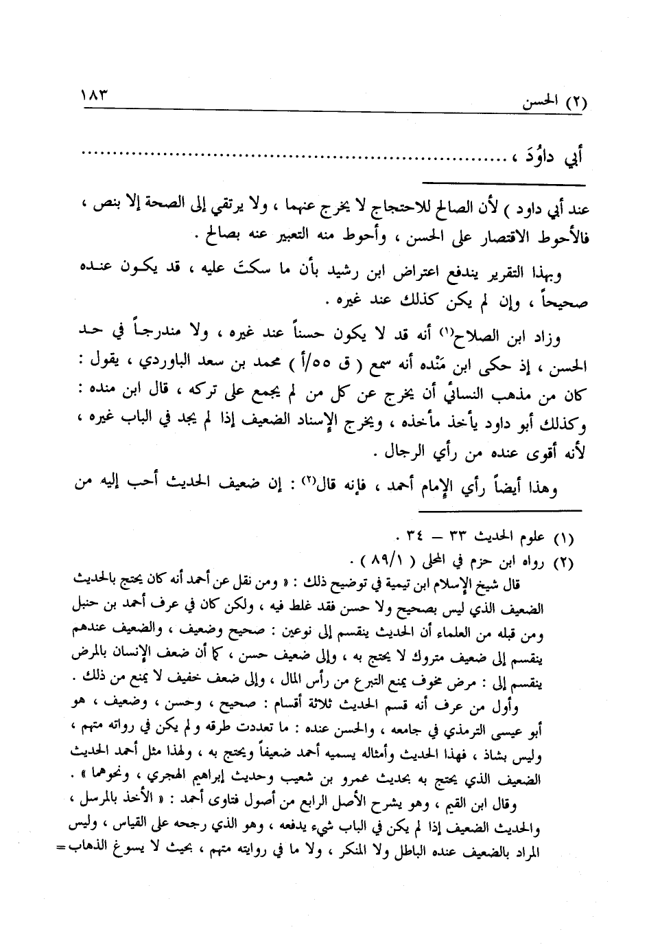 وَزَادَ ابْنُ الصَّلَاحِ أَنَّهُ قَدْ لَا يَكُونُ حَسَنًا عِنْدَ غَيْرِهِ، وَلَا مُنْدَرِجًا فِي حَدِّ الْحَسَنِ، إِذْ حَكَى ابْنُ مَنْدَهْ أَنَّهُ سَمِعَ مُحَمَّدَ بْنَ سَعْدٍ الْبَاوَرْدِيَّ يَقُولُ: كَانَ مِنْ مَذْهَبِ النَّسَائِيِّ أَنْ يُخْرِجَ عَنْ كُلِّ مَنْ لَمْ يُجْتَمَعْ عَلَى تَرْكِهِ، قَالَ ابْنُ مَنْدَهْ: وَكَذَلِكَ أَبُو دَاوُدَ يَأْخُذُ مَأْخَذَهُ، وَيُخْرِجُ الْإِسْنَادَ الضَّعِيفَ إِذَا لَمْ يَجِدْ فِي الْبَابِ غَيْرَهُ؛ لِأَنَّهُ أَقْوَى عِنْدَهُ مِنْ رَأْيِ الرِّجَالِ.