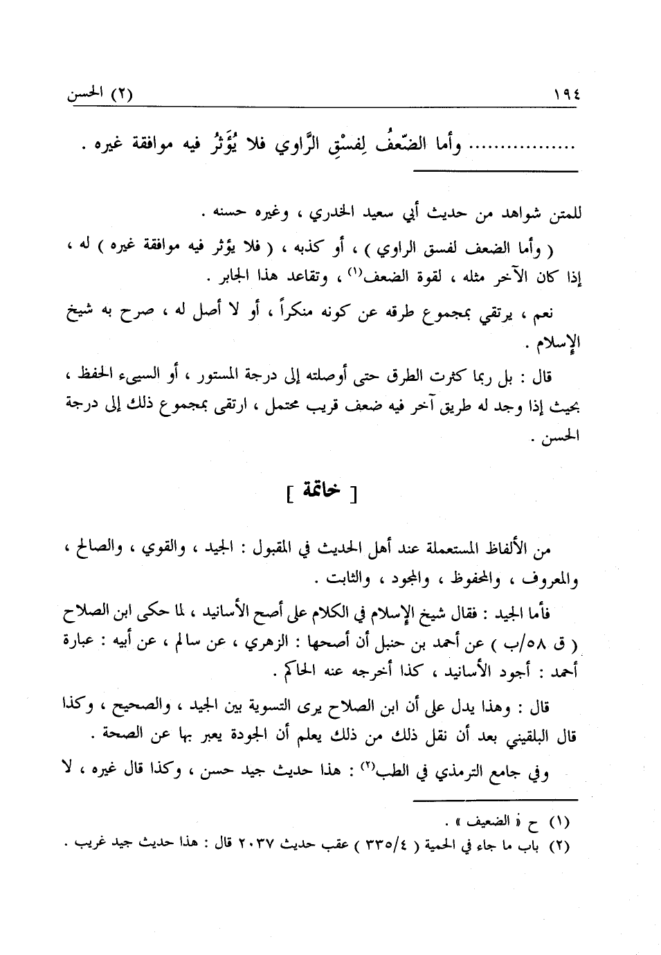 قَالَ: وَهَذَا يَدُلُّ عَلَى أَنَّ ابْنَ الصَّلَاحِ يَرَى التَّسْوِيَةَ بَيْنَ الْجَيِّدِ وَالصَّحِيحِ، كَذَا قَالَ الْبُلْقِينِيُّ بَعْدَ أَنْ نَقَلَ ذَلِكَ مِنْ ذَلِكَ يُعْلَمُ أَنَّ الْجَوْدَةَ يُعَبَّرُ بِهَا عَنِ الصِّحَّةِ.