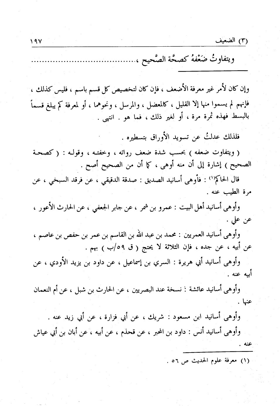 وَأَوْهَى أَسَانِيدِ أَهْلِ الْبَيْتِ: عَمْرُو بْنُ شِمْرٍ، عَنْ جَابِرٍ الْجُعْفِيِّ، عَنِ الْحَارِثِ الْأَعْوَرِ، عَنْ عَلِيٍّ.