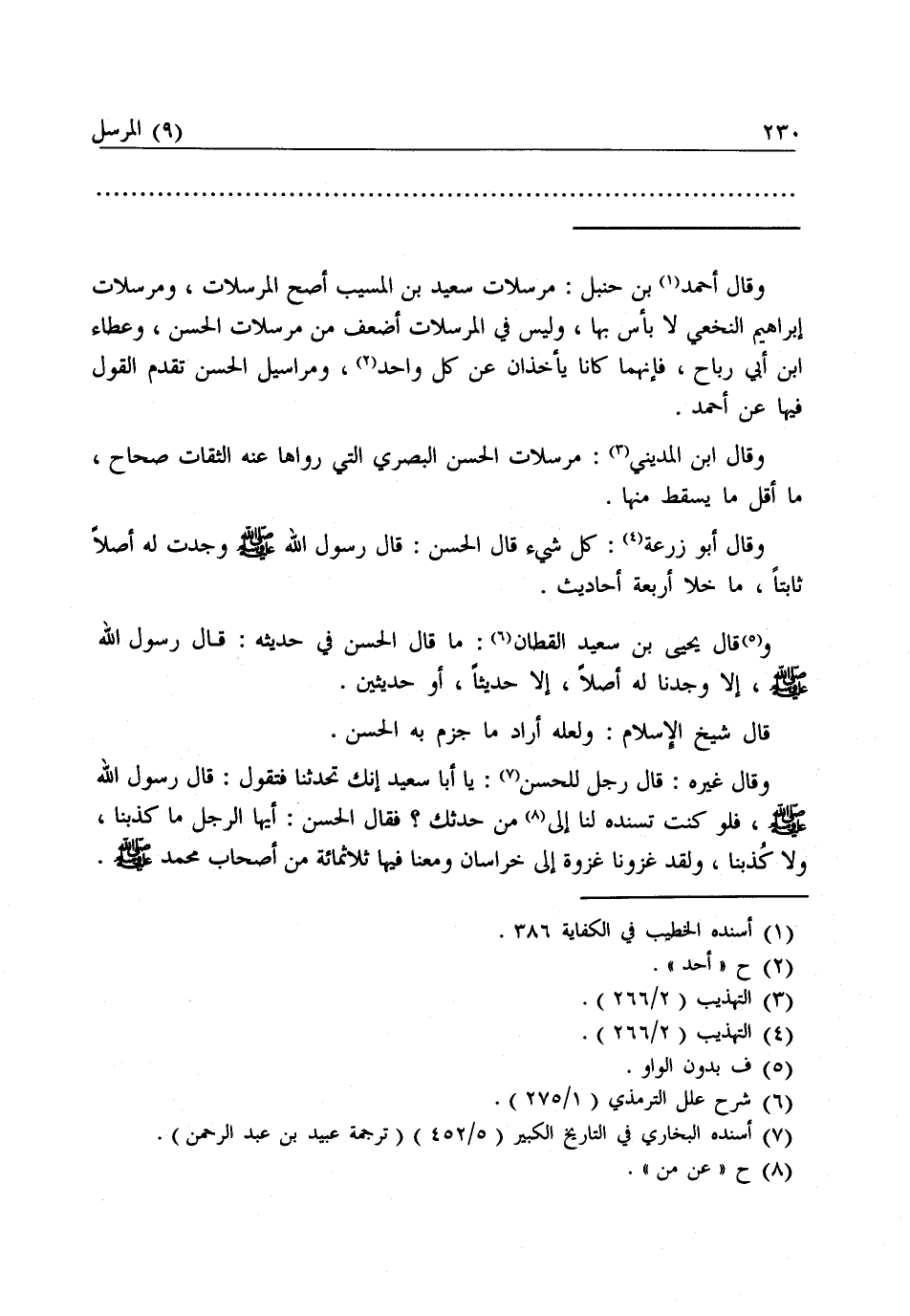 ـــــــــــــــــــــــــــــQوَقَالَ أَحْمَدُ بْنُ حَنْبَلٍ: مُرْسَلَاتُ سَعِيدِ بْنِ الْمُسَيَّبِ أَصَحُّ الْمُرْسَلَاتِ، وَمُرْسَلَاتُ إِبْرَاهِيمَ النَّخَعِيِّ لَا بَأْسَ بِهَا، وَلَيْسَ فِي الْمُرْسَلَاتِ أَضْعَفُ مِنْ مُرْسَلَاتِ الْحَسَنِ، وَعَطَاءِ بْنِ أَبِي رَبَاحٍ، فَإِنَّهُمَا كَانَا يَأْخُذَانِ، عَنْ كُلِّ وَاحِدٍ، وَمَرَاسِيلُ الْحَسَنِ تَقَدَّمَ الْقَوْلُ فِيهَا عَنْ أَحْمَدَ.
