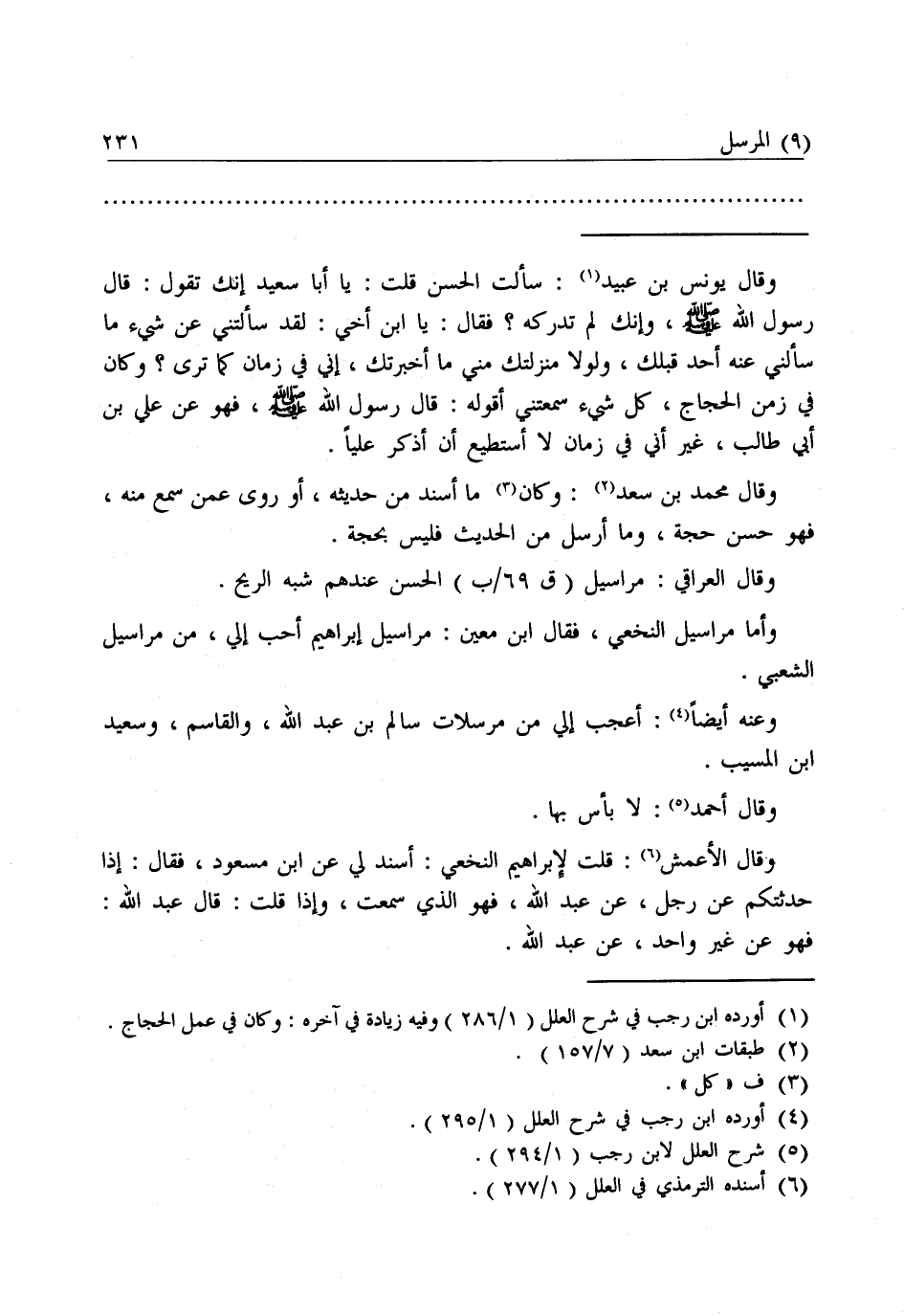 وَقَالَ الْعِرَاقِيُّ: مَرَاسِيلُ (ق 69 \ ب) الْحَسَنِ عِنْدَهُمْ شِبْهُ الرِّيحِ.