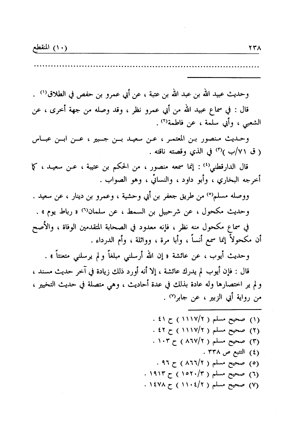 ـــــــــــــــــــــــــــــQوَحَدِيثُ عُبَيْدِ اللَّهِ بْنِ عَبْدِ اللَّهِ بْنِ عُتْبَةَ، عَنْ أَبِي عَمْرِو بْنِ حَفْصٍ فِي الطَّلَاقِ، قَالَ: فِي سَمَاعِ عُبَيْدِ اللَّهِ مِنْ أَبِي عَمْرٍو نَظَرٌ، وَقَدْ وَصَلَهُ مِنْ جِهَةٍ أُخْرَى، عَنِ الشَّعْبِيِّ، وَأَبِي سَلَمَةَ، عَنْ فَاطِمَةَ.