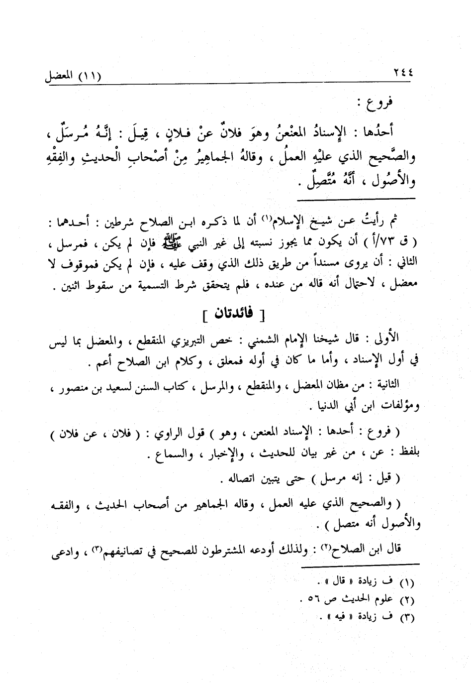 [فروع الأول الْإِسْنَادُ الْمُعَنْعَنُ]