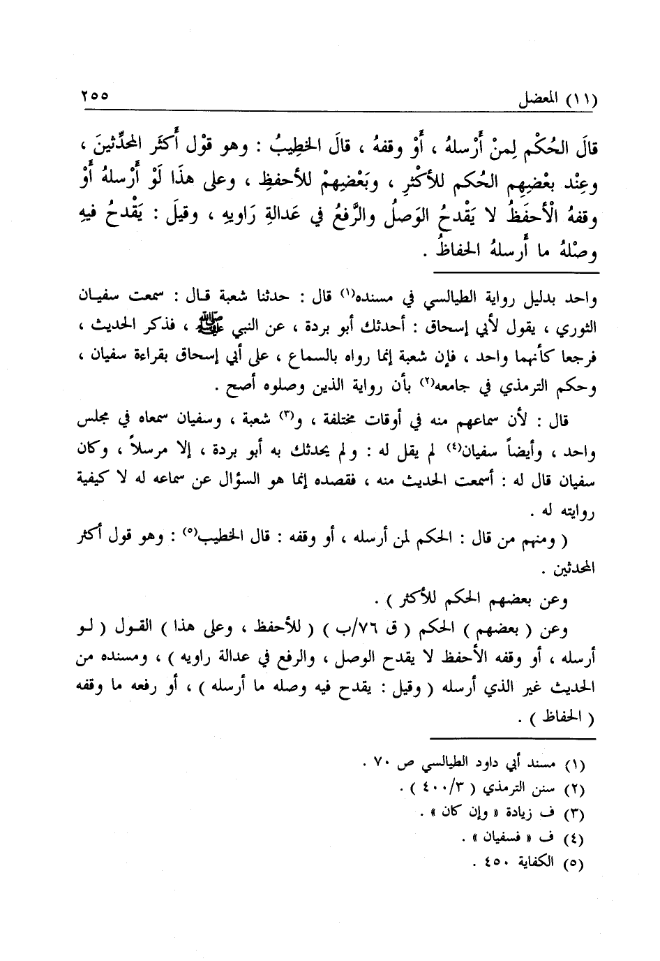 (وَمِنْهُمْ مَنْ قَالَ: الْحُكْمُ لِمَنْ أَرْسَلَهُ، أَوْ وَقَفَهُ، قَالَ الْخَطِيبُ: وَهُوَ قَوْلُ أَكْثَرِ الْمُحَدِّثِينَ.