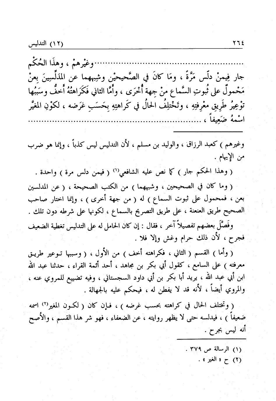 ـــــــــــــــــــــــــــــQوَغَيْرِهِمْ) كَعَبْدِ الرَّزَّاقِ، وَالْوَلِيدِ بْنِ مُسْلِمٍ ; لِأَنَّ التَّدْلِيسَ لَيْسَ كَذِبًا، وَإِنَّمَا هُوَ ضَرْبٌ مِنَ الْإِيهَامِ.