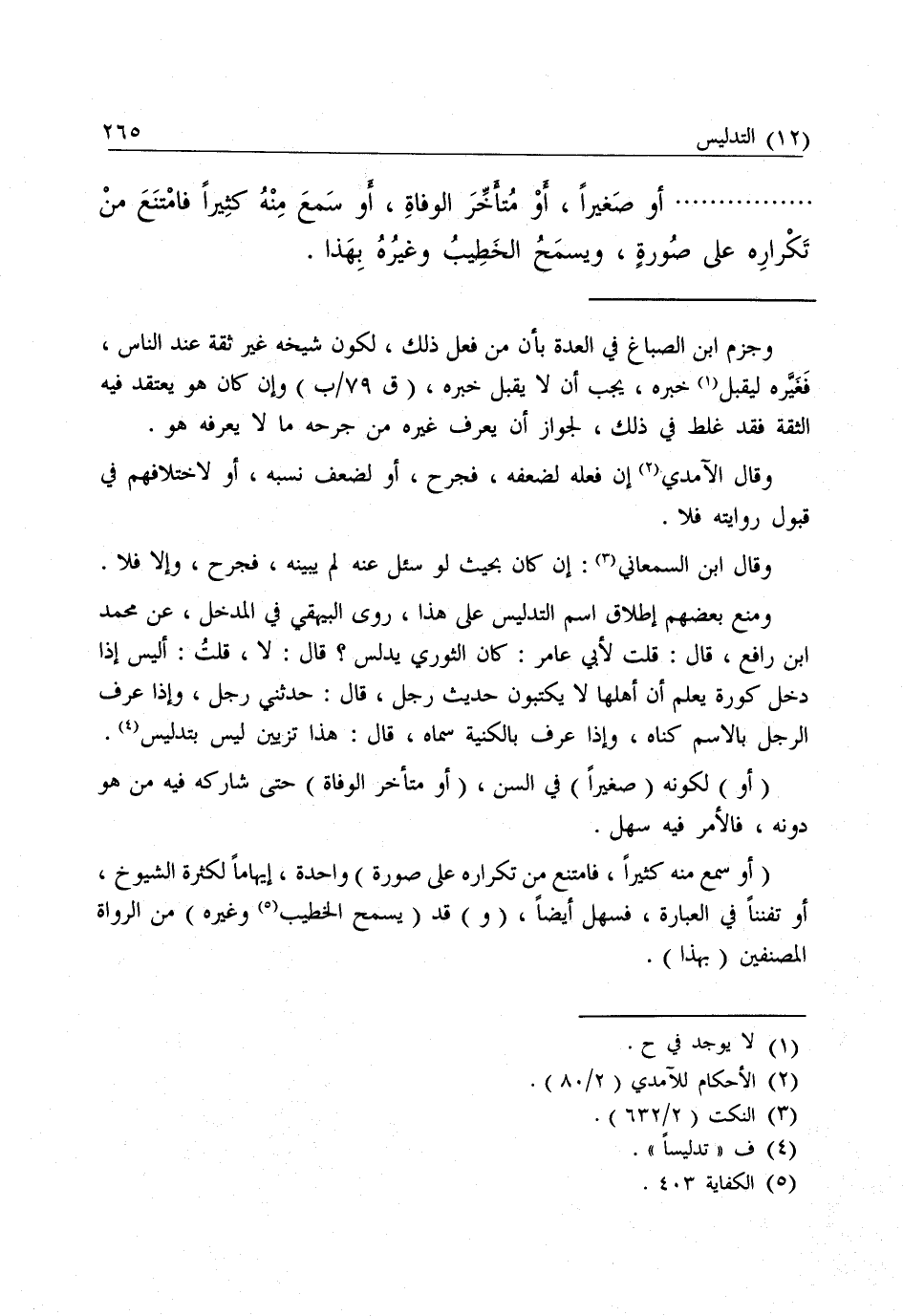 وَمَنَعَ بَعْضُهُمْ إِطْلَاقَ اسْمِ التَّدْلِيسِ عَلَى هَذَا، رَوَى الْبَيْهَقِيُّ فِي " الْمَدْخَلِ "، عَنْ مُحَمَّدِ بْنِ رَافِعٍ، قَالَ: قُلْتُ لِأَبِي عَامِرٍ: كَانَ الثَّوْرِيُّ يُدَلِّسُ؟ قَالَ: لَا، قُلْتُ: أَلَيْسَ إِذَا دَخَلَ كُورَةً يَعْلَمُ أَنَّ أَهْلَهَا لَا يَكْتُبُونَ حَدِيثَ رَجُلٍ، قَالَ: حَدَّثَنِي رَجُلٌ، وَإِذَا عُرِفَ الرَّجُلُ بِالِاسْمِ كَنَّاهُ، وَإِذَا عُرِفَ بِالْكُنْيَةِ سَمَّاهُ، قَالَ: هَذَا تَزْيِينٌ لَيْسَ بِتَدْلِيسٍ.