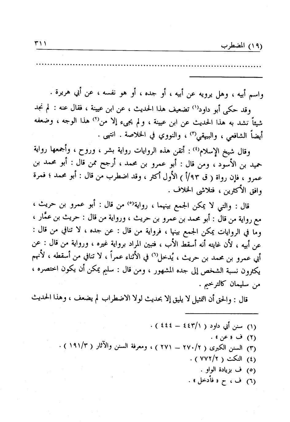 قَالَ:، وَالَّتِي لَا يُمْكِنُ الْجَمْعُ بَيْنَهَا رِوَايَةُ مَنْ قَالَ: أَبُو عَمْرِو بْنُ حُرَيْثٍ مَعَ رِوَايَةِ مَنْ قَالَ: أَبُو مُحَمَّدِ بْنُ عَمْرِو بْنِ حُرَيْثٍ وَرِوَايَةُ مَنْ قَالَ: حُرَيْثُ بْنُ عَمَّارٍ، وَمَا فِي الرِّوَايَاتِ يُمْكِنُ الْجَمْعُ بَيْنَهَا، فَرِوَايَةُ مَنْ قَالَ: عَنْ جَدِّهِ، لَا تُنَافِي مَنْ قَالَ: عَنْ أَبِيهِ ; لِأَنَّ غَايَتَهُ أَنَّهُ أَسْقَطَ الْأَبَ، فَتَبَيَّنَ الْمُرَادُ بِرِوَايَةِ غَيْرِهِ، وَرِوَايَةُ مَنْ قَالَ: عَنْ أَبِي عَمْرِو بْنِ مُحَمَّدِ بْنِ حُرَيْثٍ يُدْخِلُ فِي الْأَثْنَاءِ عَمْرًا لَا تُنَافِي مَنْ أَسْقَطَهُ؛ لِأَنَّهُمْ يُكْثِرُونَ نِسْبَةَ الشَّخْصِ إِلَى جَدِّهِ الْمَشْهُورِ، وَمَنْ قَالَ: سُلَيْمٌ يُمْكِنُ أَنْ يَكُونَ اخْتَصَرَهُ مِنْ سُلَيْمَانَ كَالتَّرْخِيمِ.