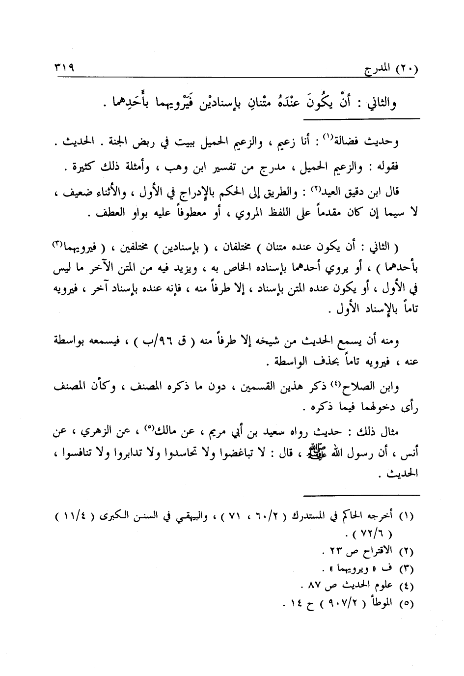 وَابْنُ الصَّلَاحِ ذَكَرَ هَذَيْنِ الْقِسْمَيْنِ دُونَ مَا ذَكَرَهُ الْمُصَنِّفُ، وَكَأَنَّ الْمُصَنِّفَ رَأَى دُخُولَهُمَا فِيمَا ذَكَرَهُ.
